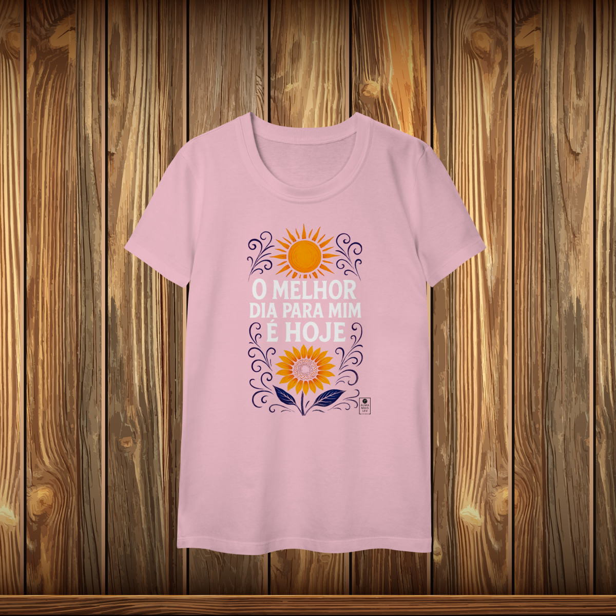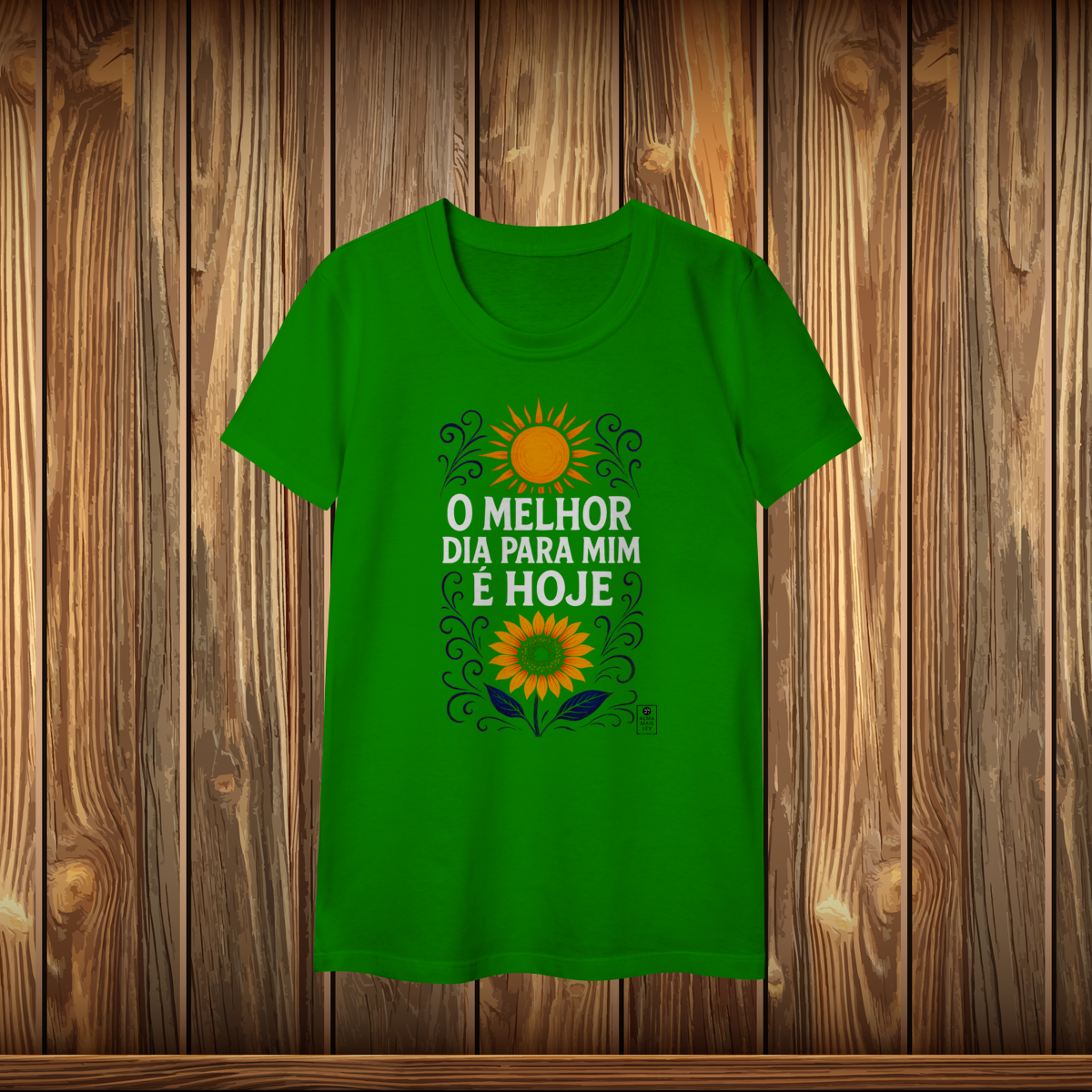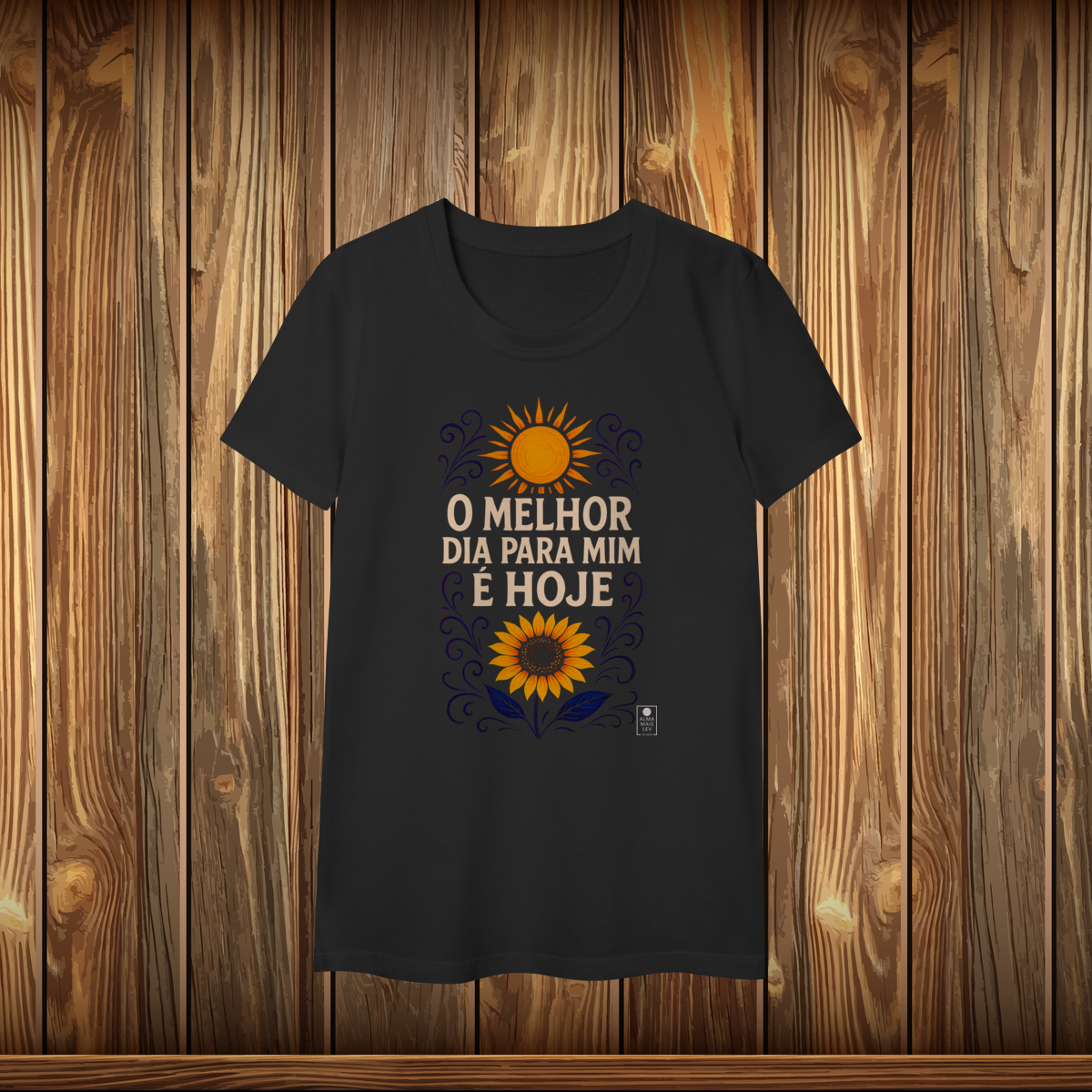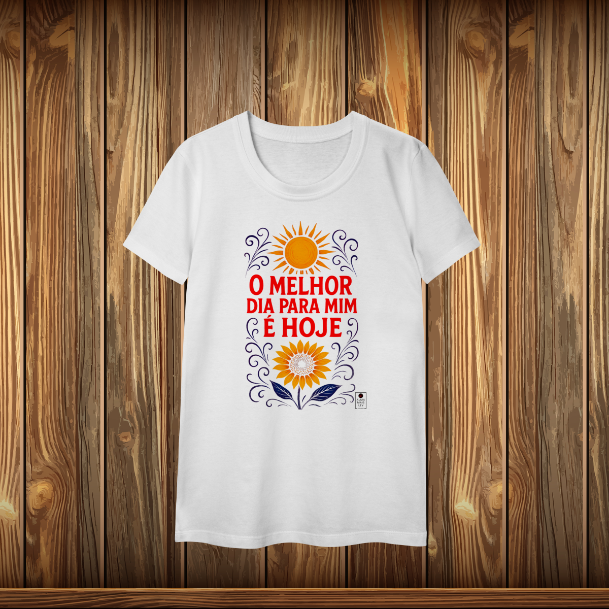 Esta camisa não é apenas uma peça de roupa; é um convite diário para viver com intenção, lembrar que o agora é valioso e que hoje pode ser sempre o melhor dia.
