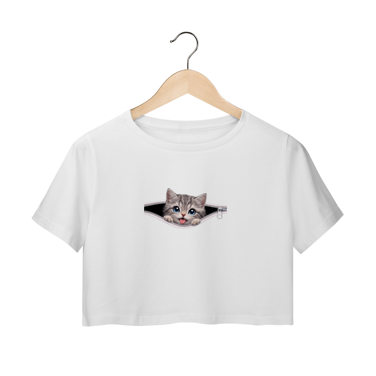 O Cropped ZIP PETS – Cute Grey Tabby Kitten faz parte da coleção ZIP PETS, uma linha criativa que traz pets curiosos surgindo através de um zíper, criando um visual divertido, moderno e cheio de personalidade.