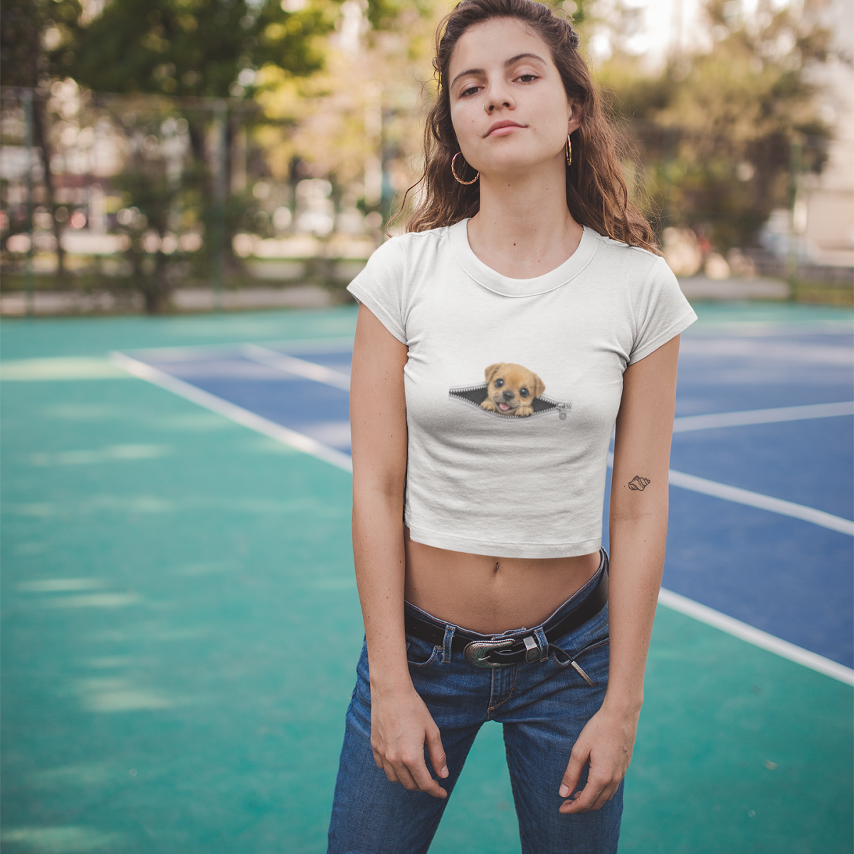 O Cropped ZIP PETS – Cute Puppy Pinscher faz parte da coleção ZIP PETS, uma linha criativa que traz pets curiosos surgindo através de um zíper, criando um visual divertido, moderno e cheio de personalidade.