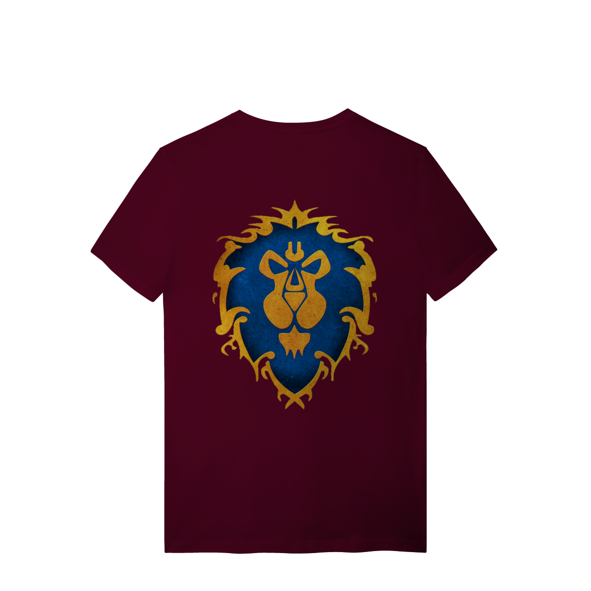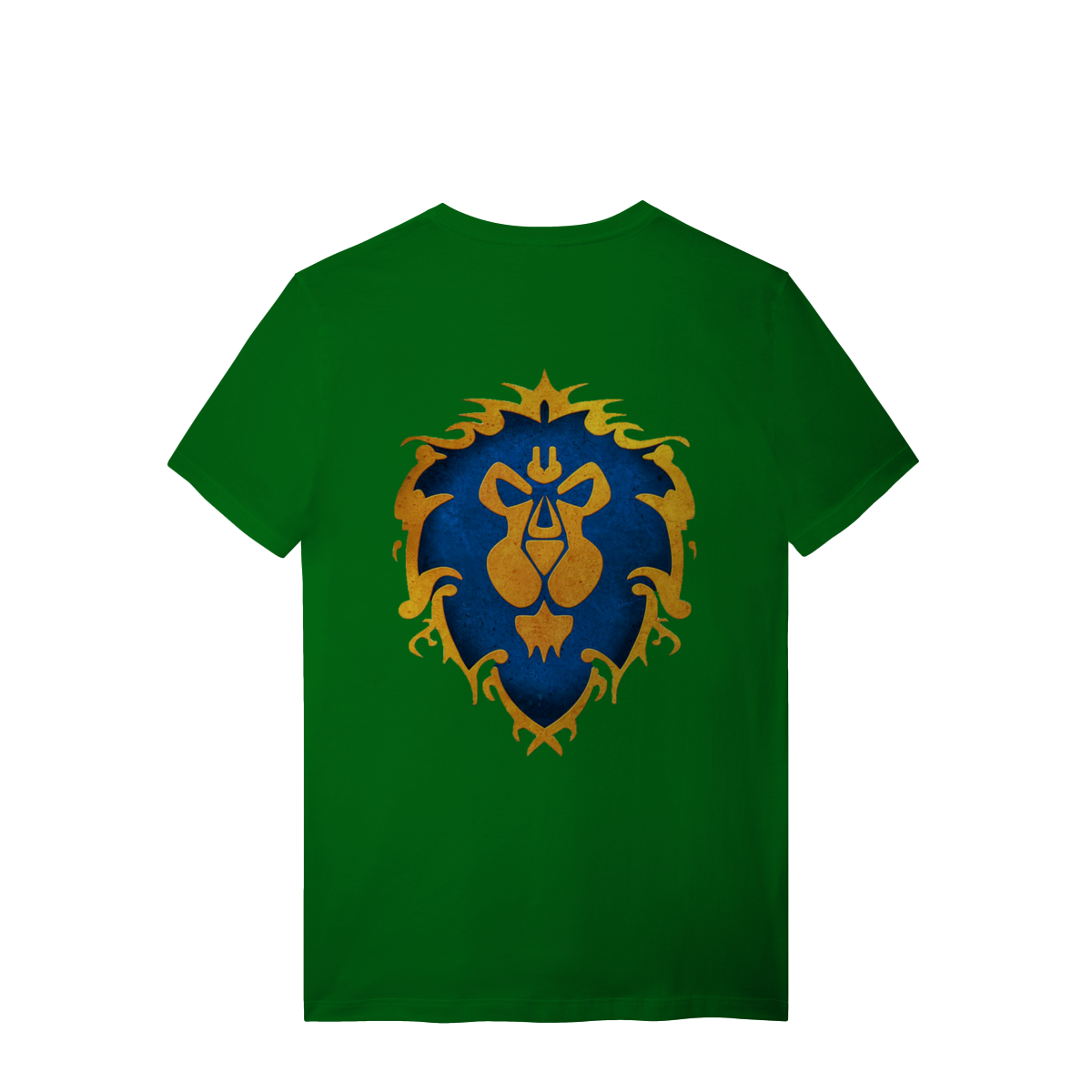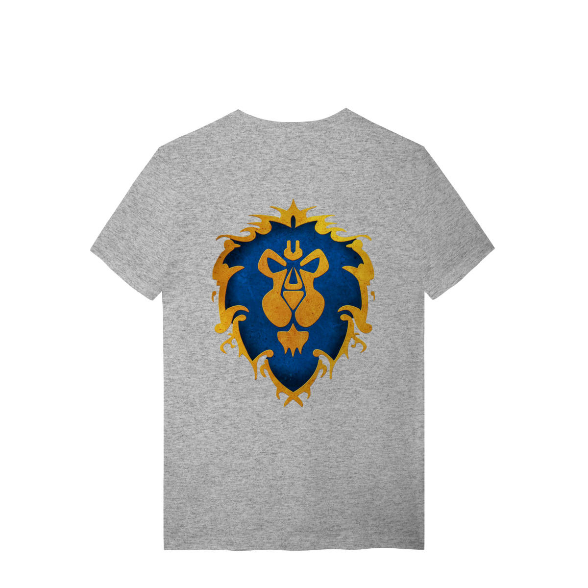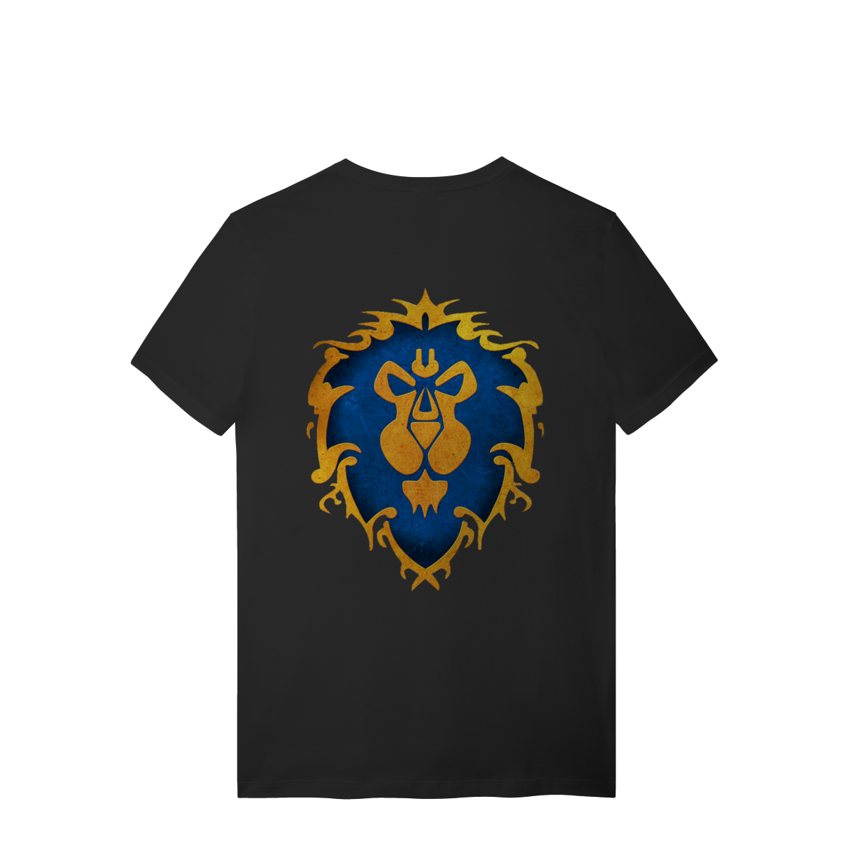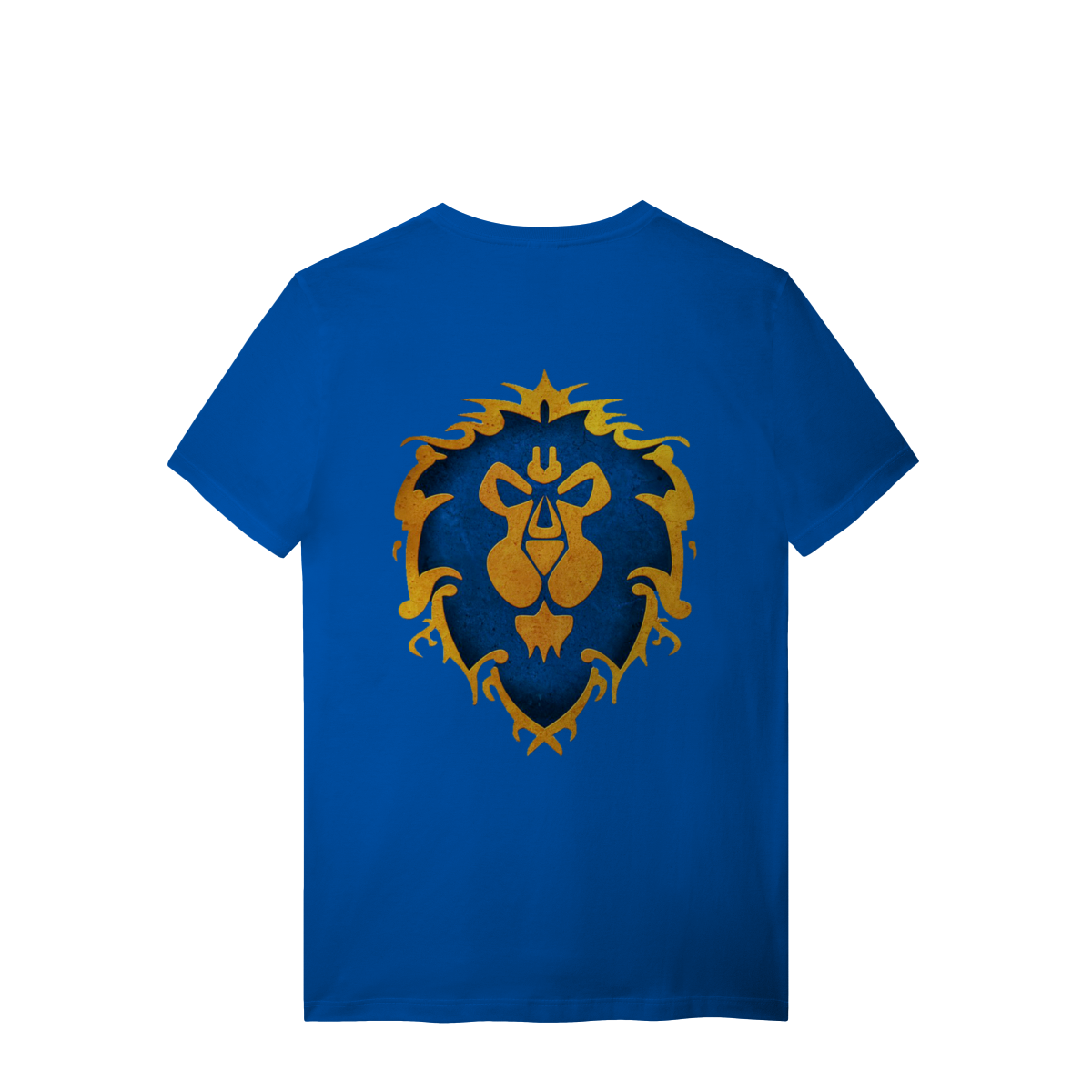 Confeccionada em malha confortável e resistente, essa camiseta acompanha você tanto nas maratonas de raid quanto no dia a dia, mantendo o caimento firme e a presença imponente de um verdadeiro campeão da Aliança.