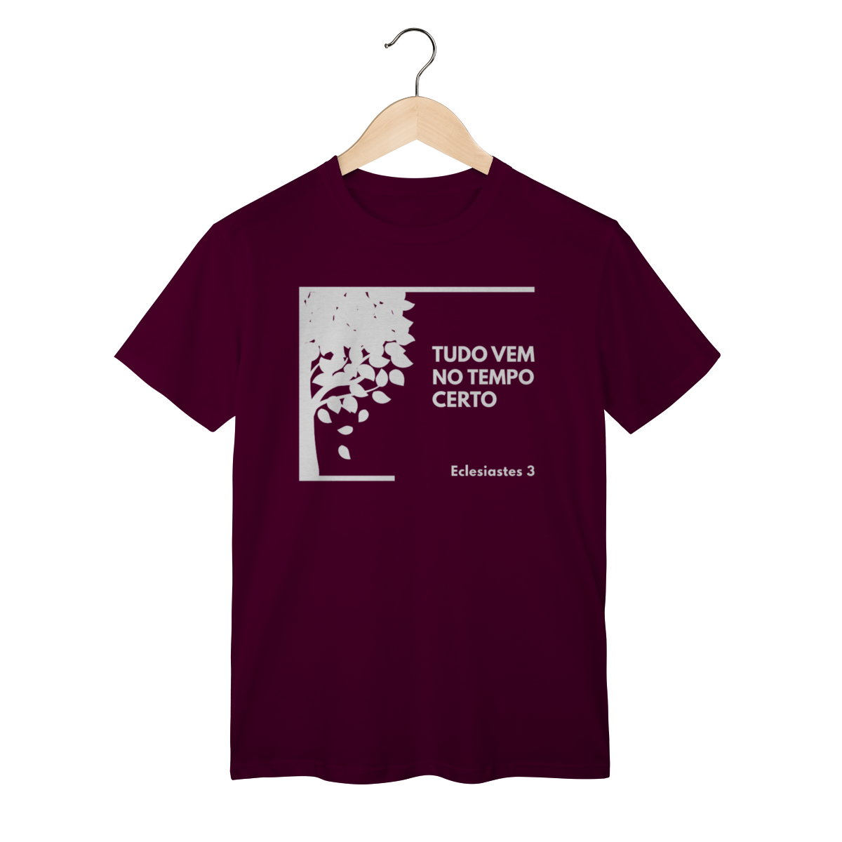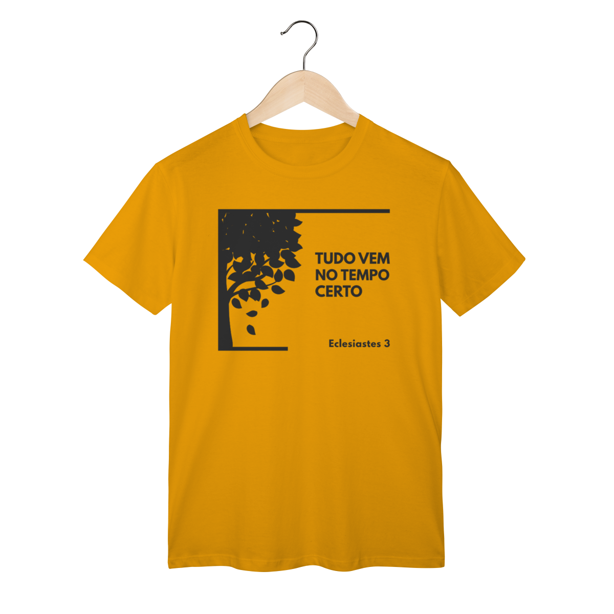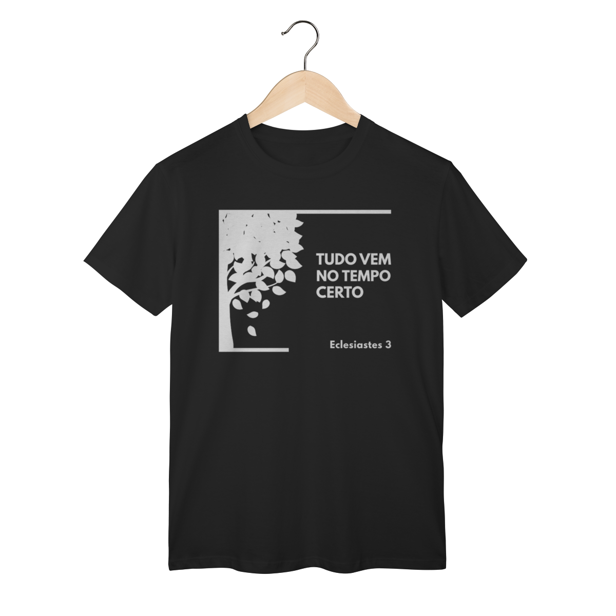 A camiseta “Tudo vem no tempo certo” é um lembrete de que Deus age com perfeição, mesmo quando não entendemos o porquê.