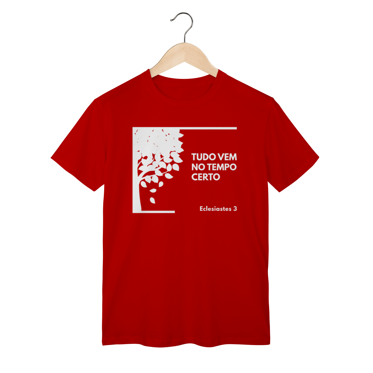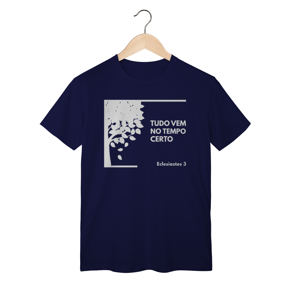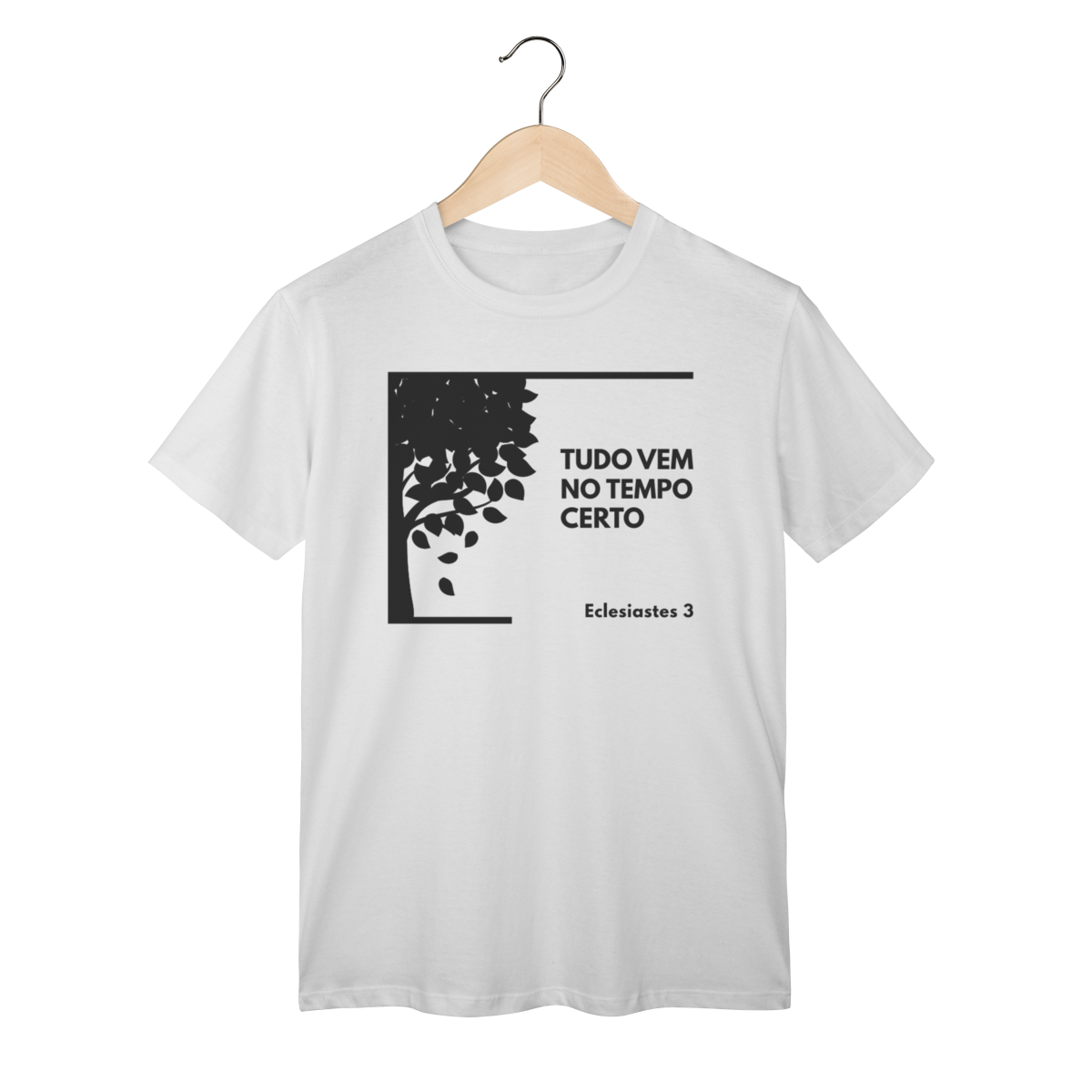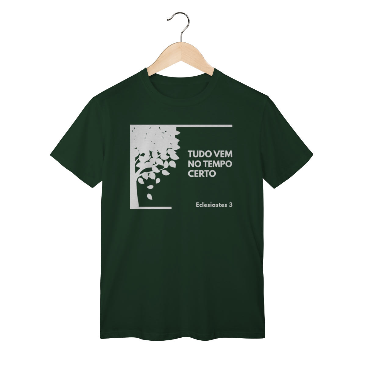 A camiseta “Tudo vem no tempo certo” é um lembrete de que Deus age com perfeição, mesmo quando não entendemos o porquê.
