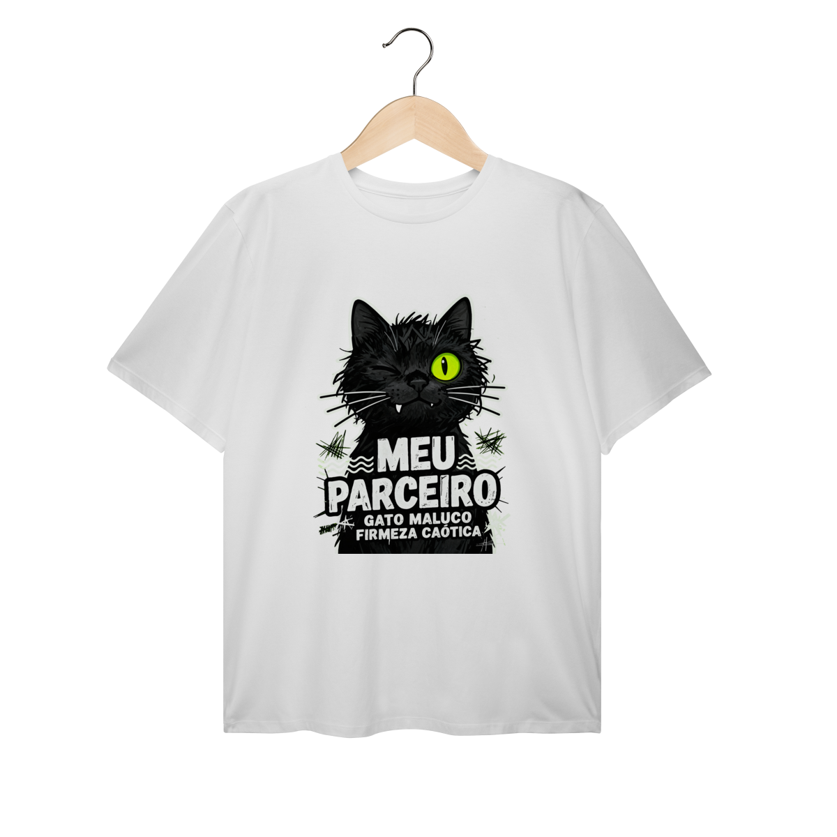 Meu parceiro na firmeza caótica das ruas. Camiseta exclusiva Dicavalli com nosso gato maluco cool mas completamente insano. Expressão descolada desequilibrada perfeita para quem é parceiro mas imprevisível. Design streetwear contemporâneo brasileiro com tipografia urbana distressed e elementos culturais tropicais dark. Arte original que captura a essência do maluco que é confiável mas nunca totalmente são. Ideal para nerds, geeks e parceiros do caos urbano. Qualidade premium para a galera que anda junto na insanidade organizada. Cool descontrolado, parceria eterna. Firmeza sempre, sanidade nunca.
