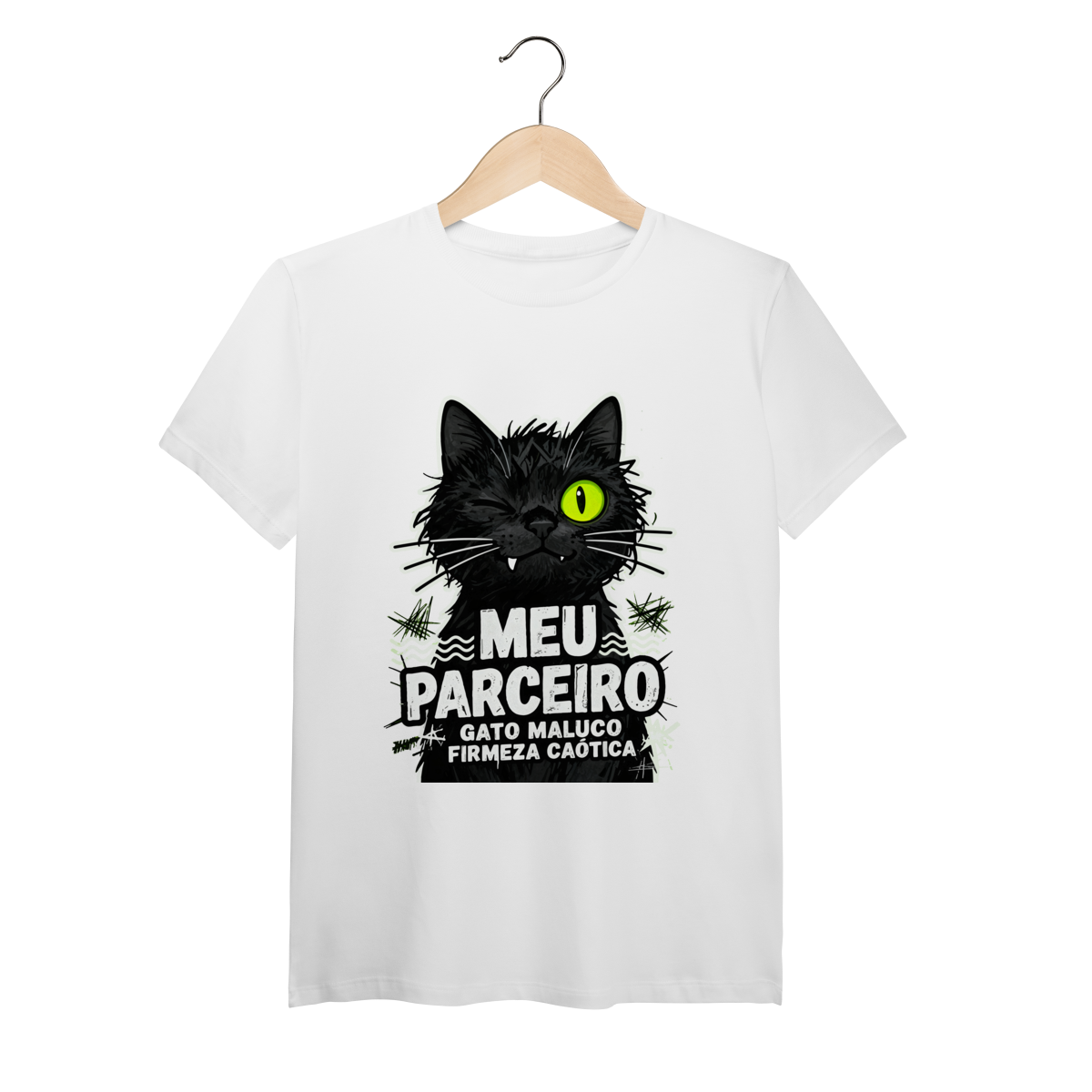 Meu parceiro na firmeza caótica das ruas. Camiseta exclusiva Dicavalli com nosso gato maluco cool mas completamente insano. Expressão descolada desequilibrada perfeita para quem é parceiro mas imprevisível. Design streetwear contemporâneo brasileiro com tipografia urbana distressed e elementos culturais tropicais dark. Arte original que captura a essência do maluco que é confiável mas nunca totalmente são. Ideal para nerds, geeks e parceiros do caos urbano. Qualidade premium para a galera que anda junto na insanidade organizada. Cool descontrolado, parceria eterna. Firmeza sempre, sanidade nunca.