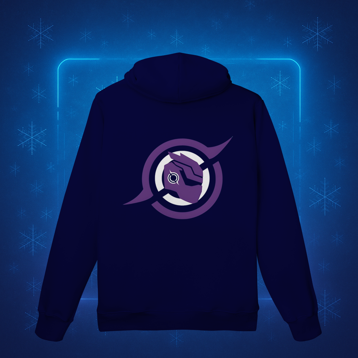 As prévias e mockups, montadas sobre o fundo Cryonic Oblivion, revelam a peça como se ela estivesse exposta em uma sala de comando de uma nave — flocos cyber, luzes neon, atmosfera digital e a sensação de que o inverno foi reprogramado para exaltar quem continua evoluindo.