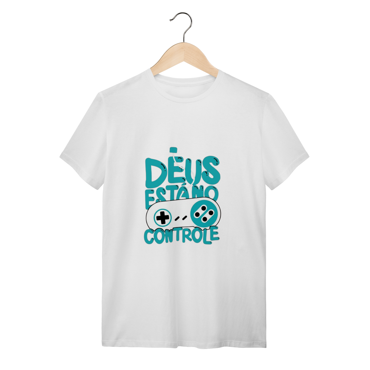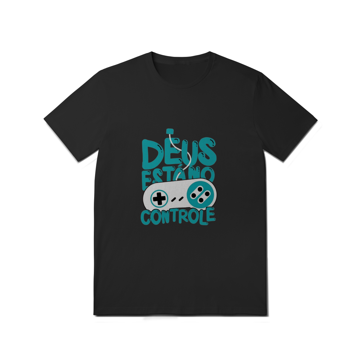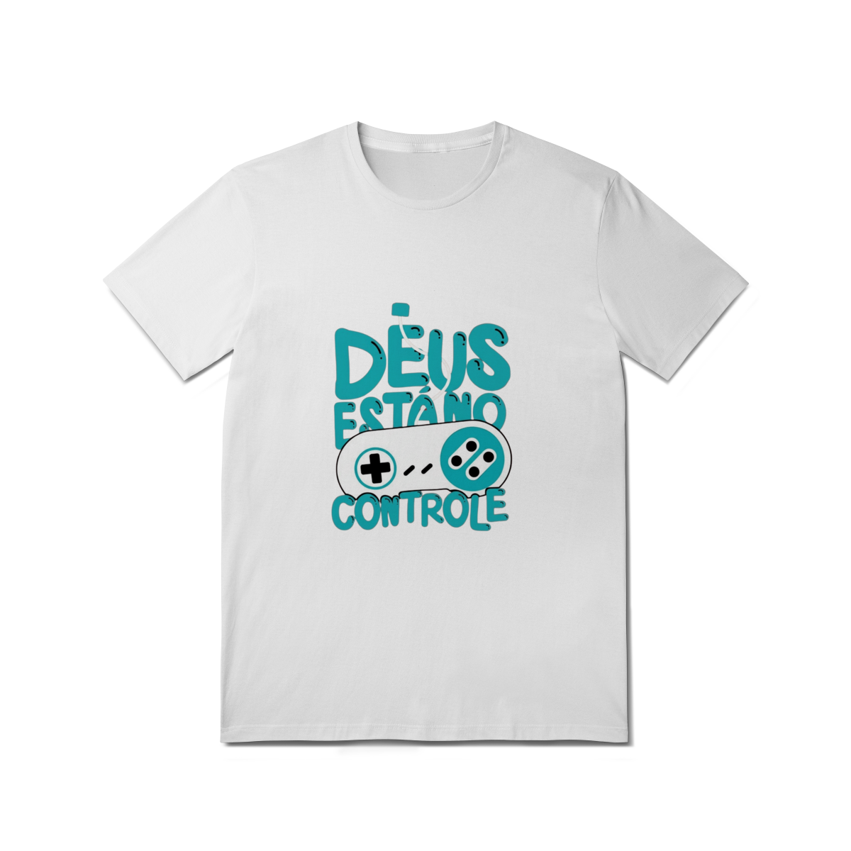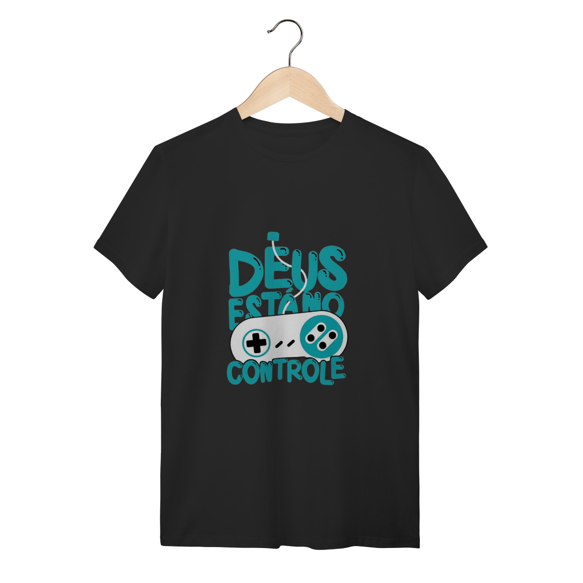 Dizem que Deus está no controle... E agora ele tem o controle mais estiloso do universo (o do seu game, claro!). Se você é daquelas pessoas que só confia no save game e acha que a vida precisa de um reset rápido, essa camiseta é o seu upgrade espiritual.