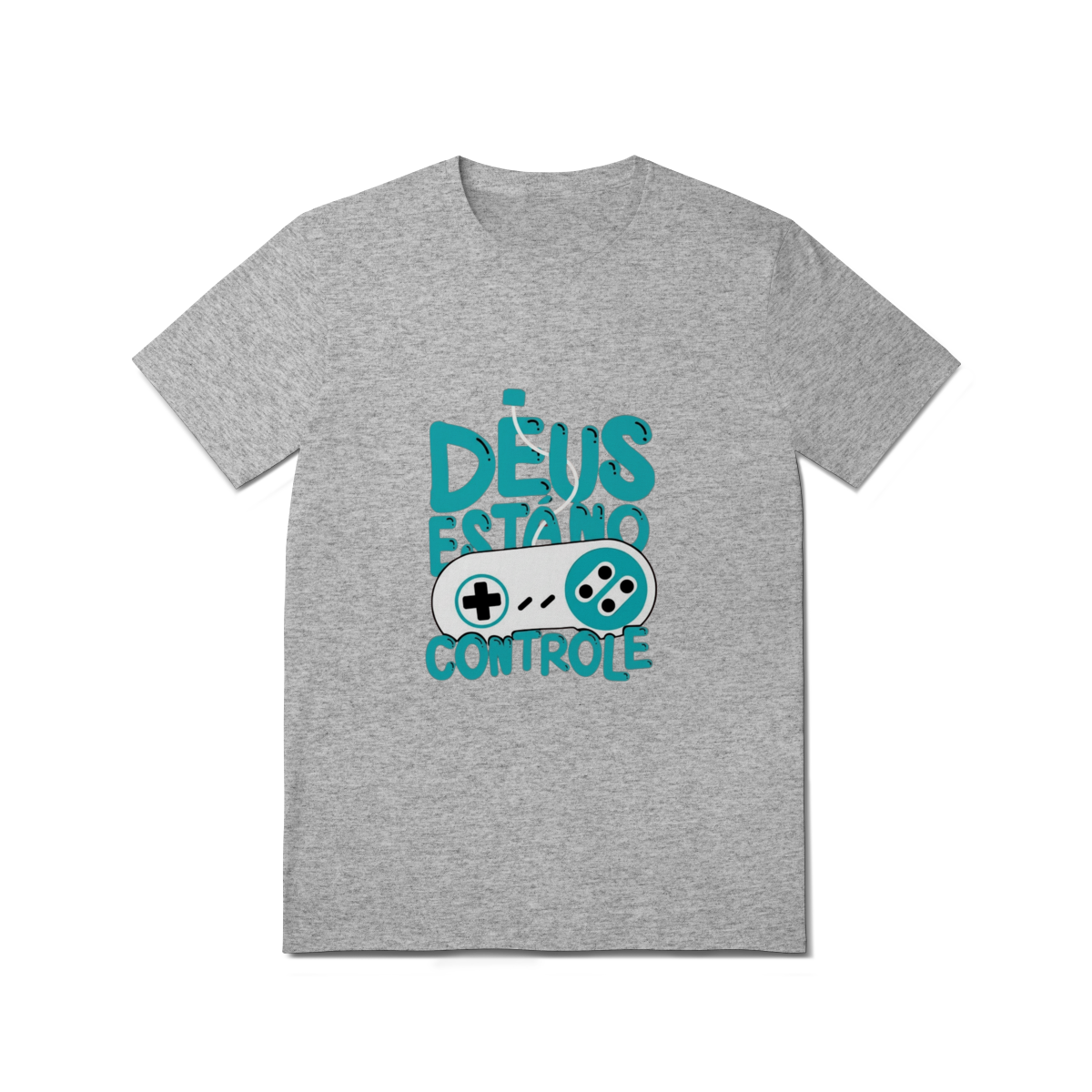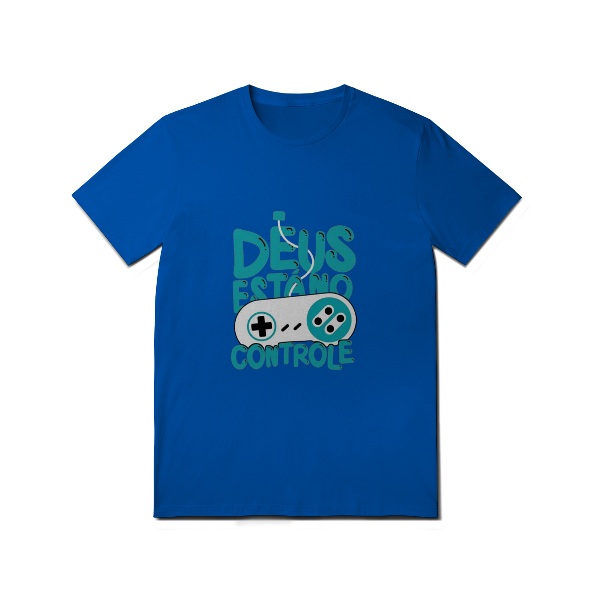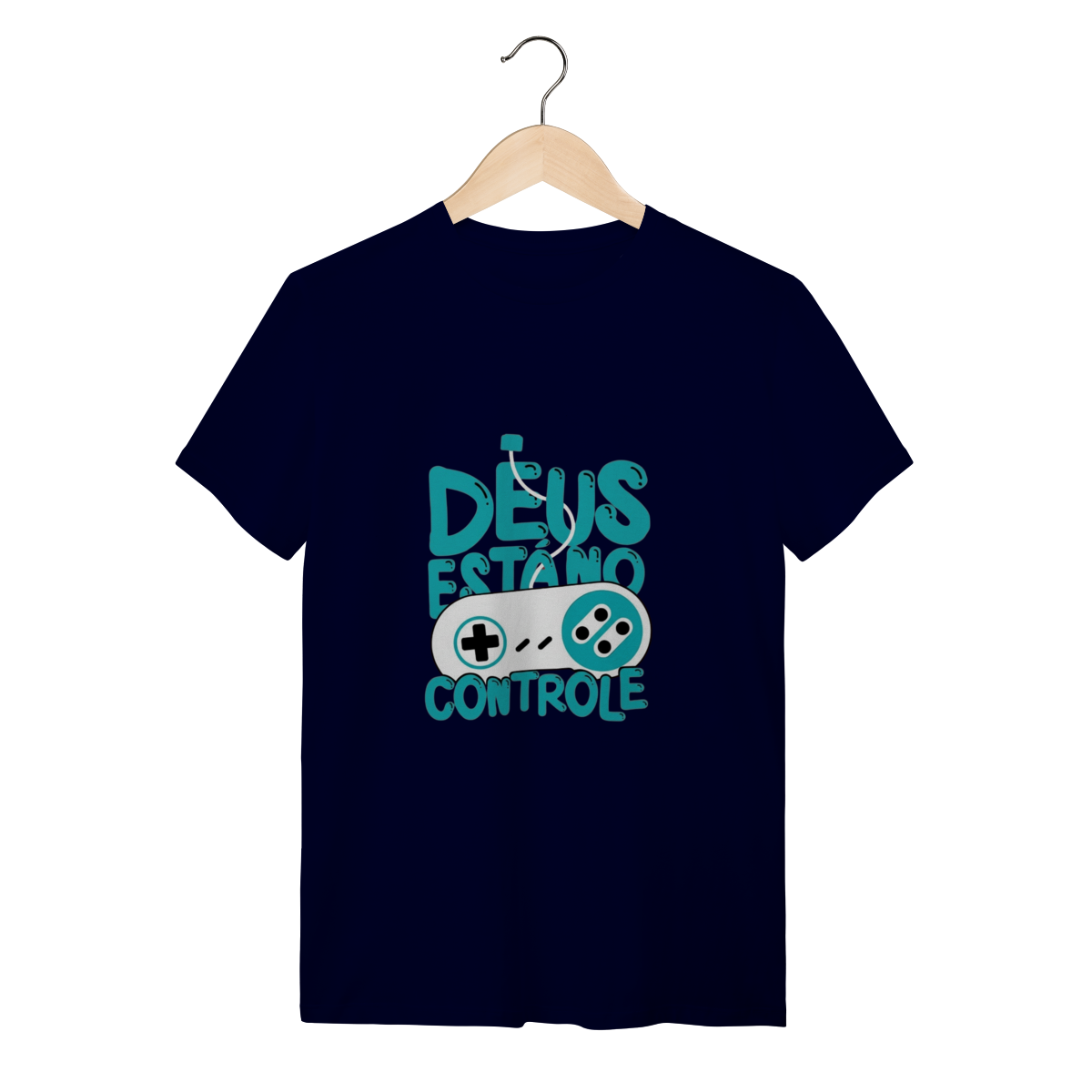 Dizem que Deus está no controle... E agora ele tem o controle mais estiloso do universo (o do seu game, claro!). Se você é daquelas pessoas que só confia no save game e acha que a vida precisa de um reset rápido, essa camiseta é o seu upgrade espiritual.