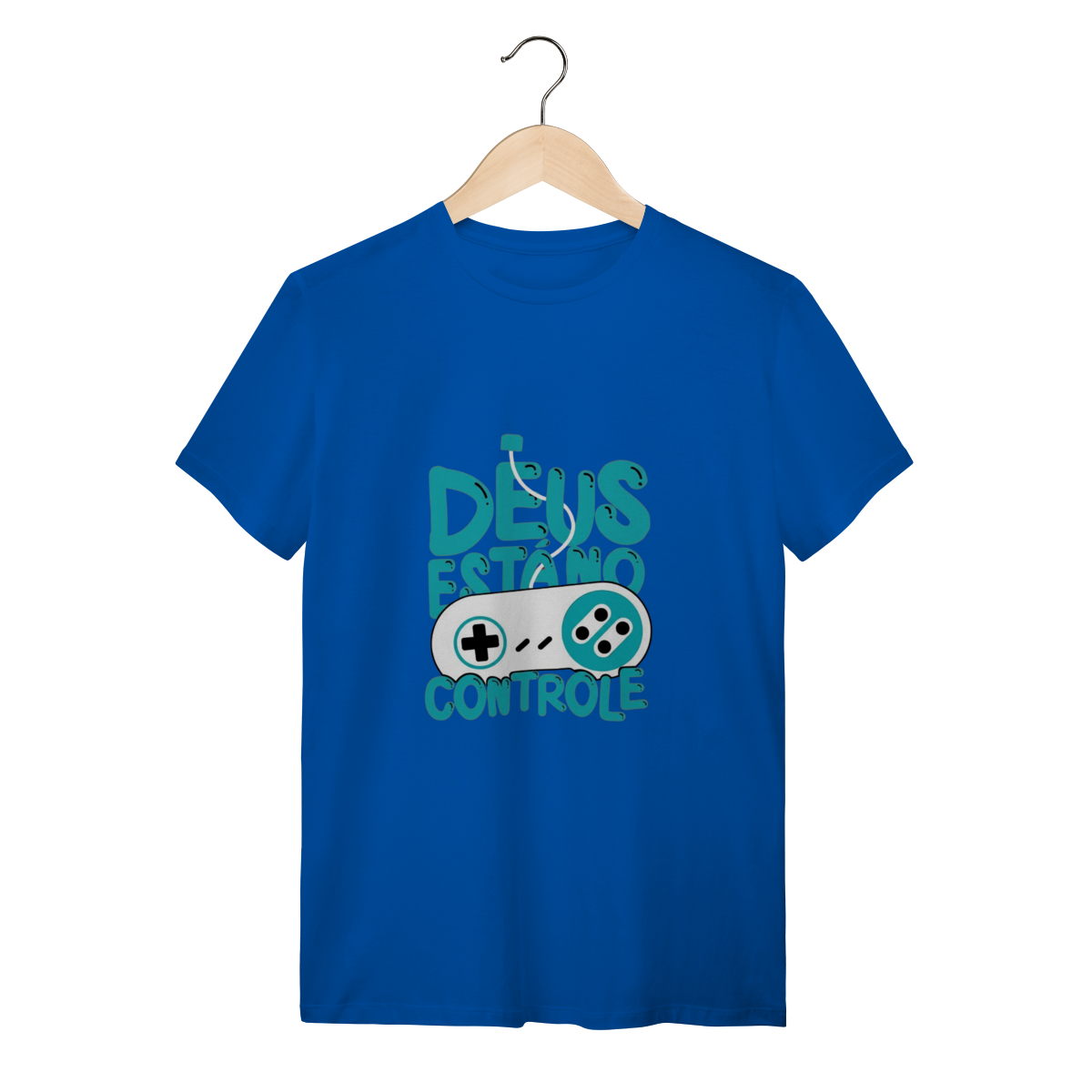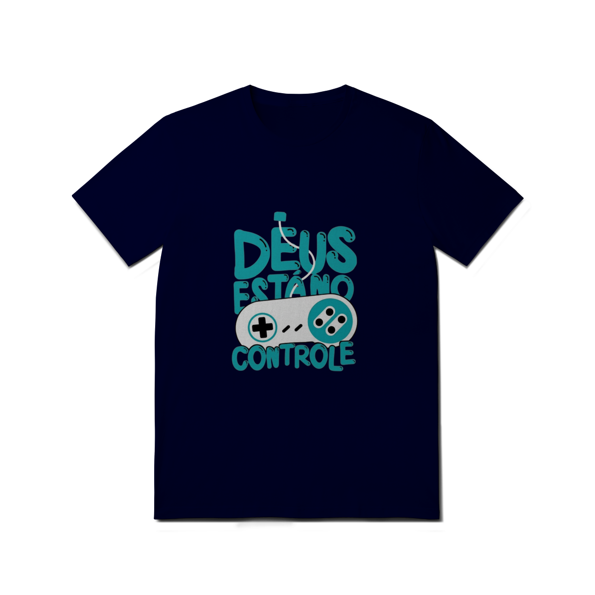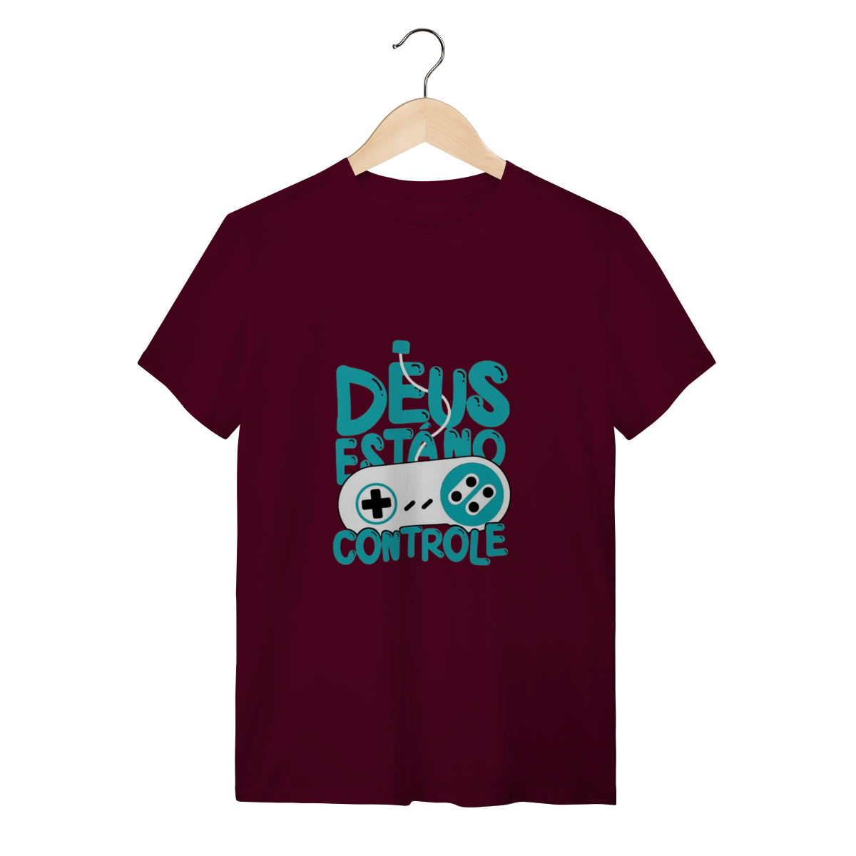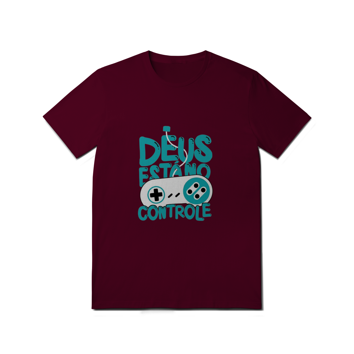 Dizem que Deus está no controle... E agora ele tem o controle mais estiloso do universo (o do seu game, claro!). Se você é daquelas pessoas que só confia no save game e acha que a vida precisa de um reset rápido, essa camiseta é o seu upgrade espiritual.