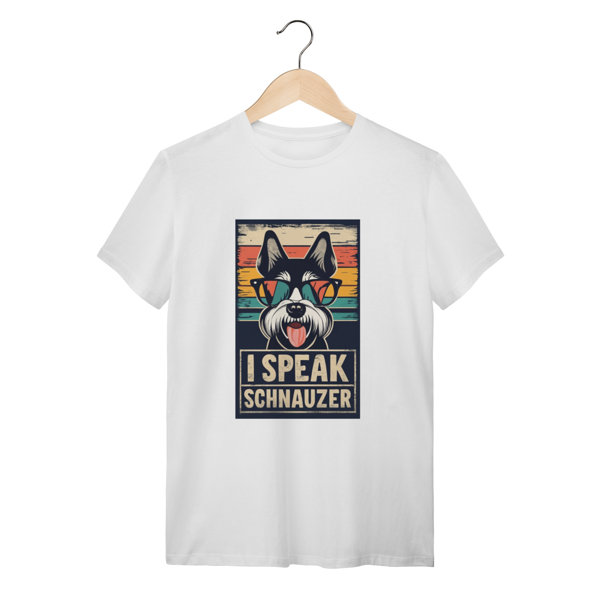 A base dessa maravilha é a nossa T-Shirt Quality, feita com 100% algodão premium. Este material é tão macio que é quase como a barba do seu Schnauzer, só que sem precisar de escovação. O algodão de alta durabilidade garante que a sua estampa retrô e super colorida não desbote antes do seu estoque de petiscos. O caimento é confortável e a malha respirável é perfeita para aguentar aquelas corridas inesperadas atrás do seu cão. Uma peça de qualidade feita para durar mais que a paciência do seu pet esperando o jantar.
