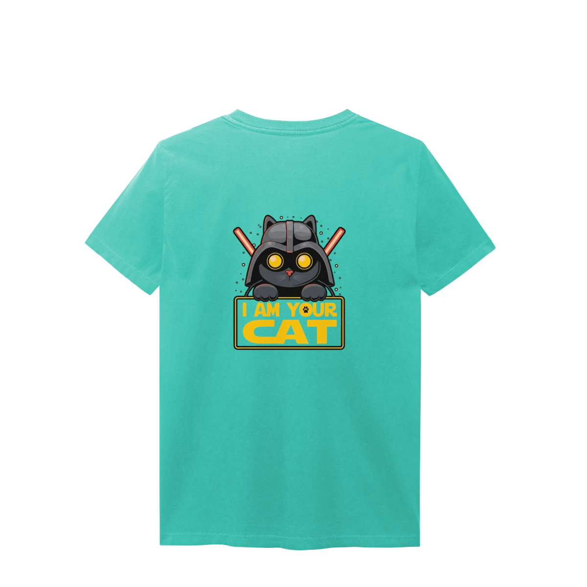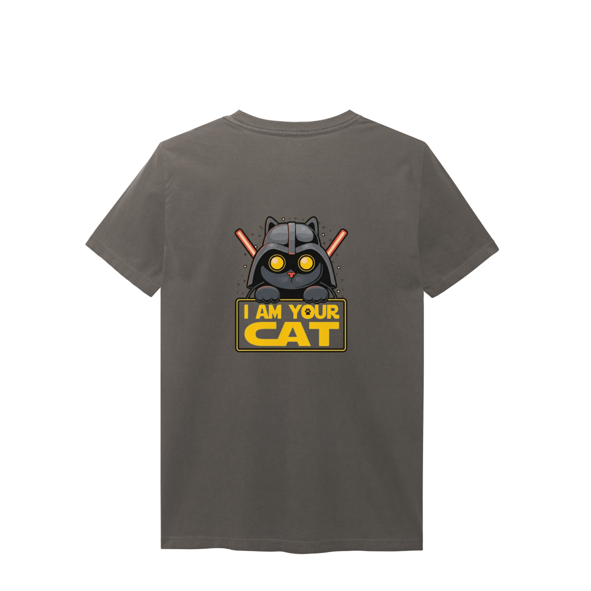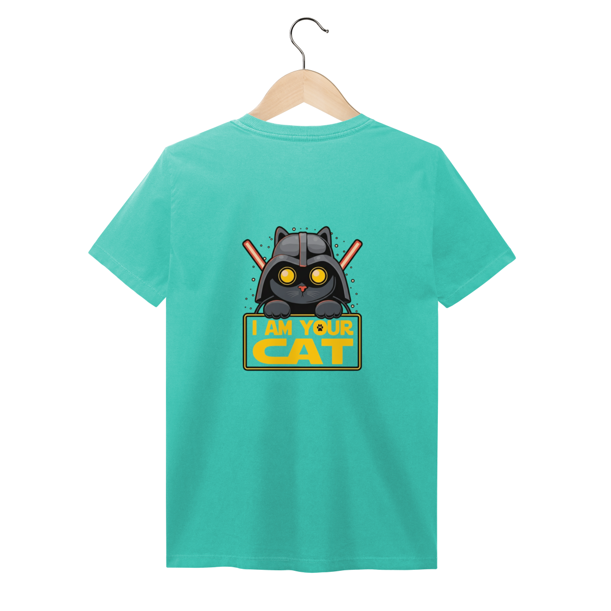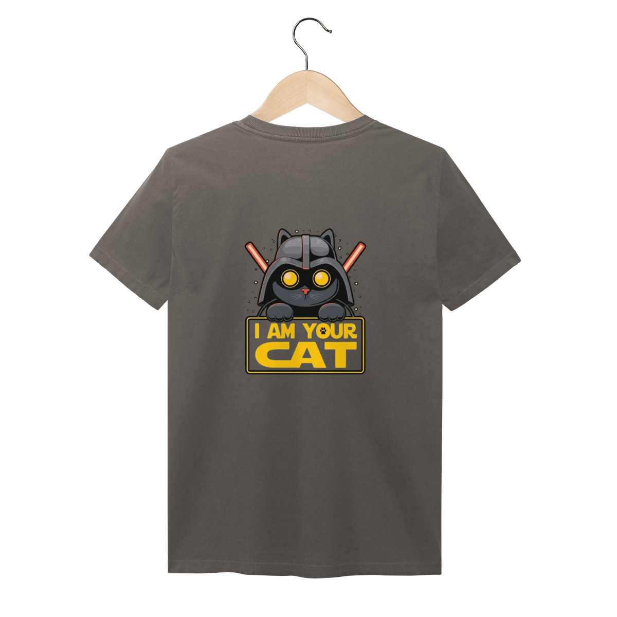 "Luke, I am your... Cat!" Quem é dono de gato sabe que a dominação felina é real e vem do espaço. Esta camiseta é para quem serve ao seu mestre felino com orgulho e um toque geek. Vista e mostre que você abraçou o Lado Negro da Fofura!