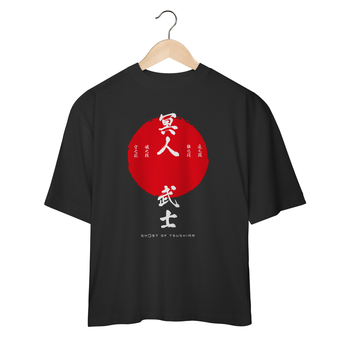 Inspirada na jornada de Jin Sakai, esta camiseta traz o equilíbrio entre tradição e sombra — o ponto onde o samurai dá lugar ao fantasma.