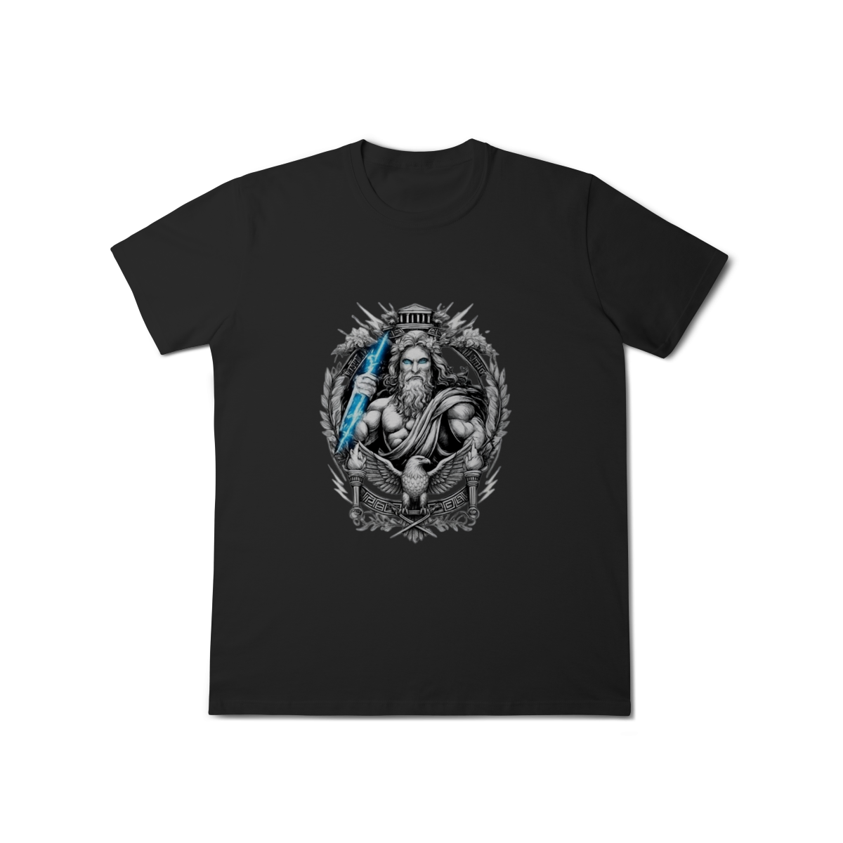 Inspirada na mitologia grega, esta camiseta traz Zeus, o rei dos deuses do Olimpo, representado em um estilo minimalista e moderno, ideal para quem curte cultura, história e streetwear.