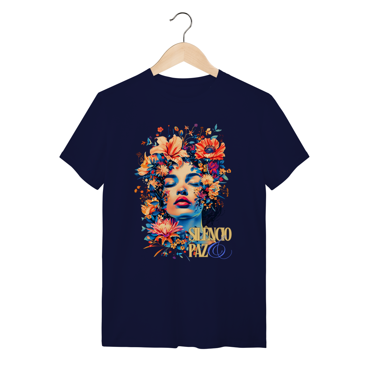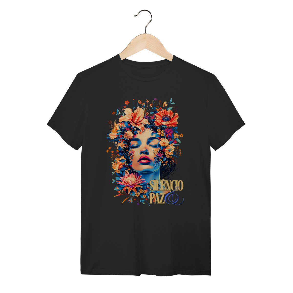 A camiseta Silêncio e Paz foi criada para mulheres que valorizam equilíbrio, introspecção e beleza interior.