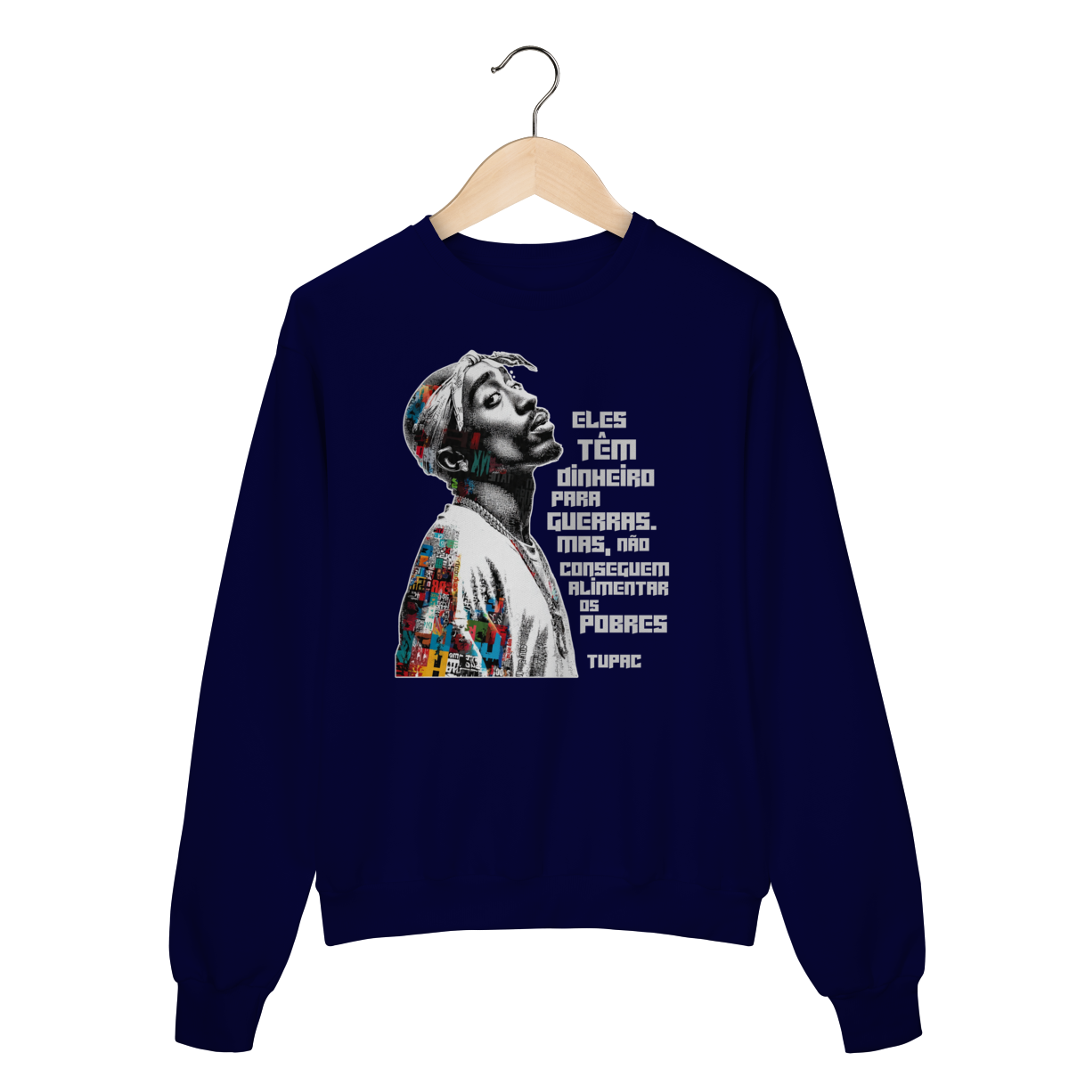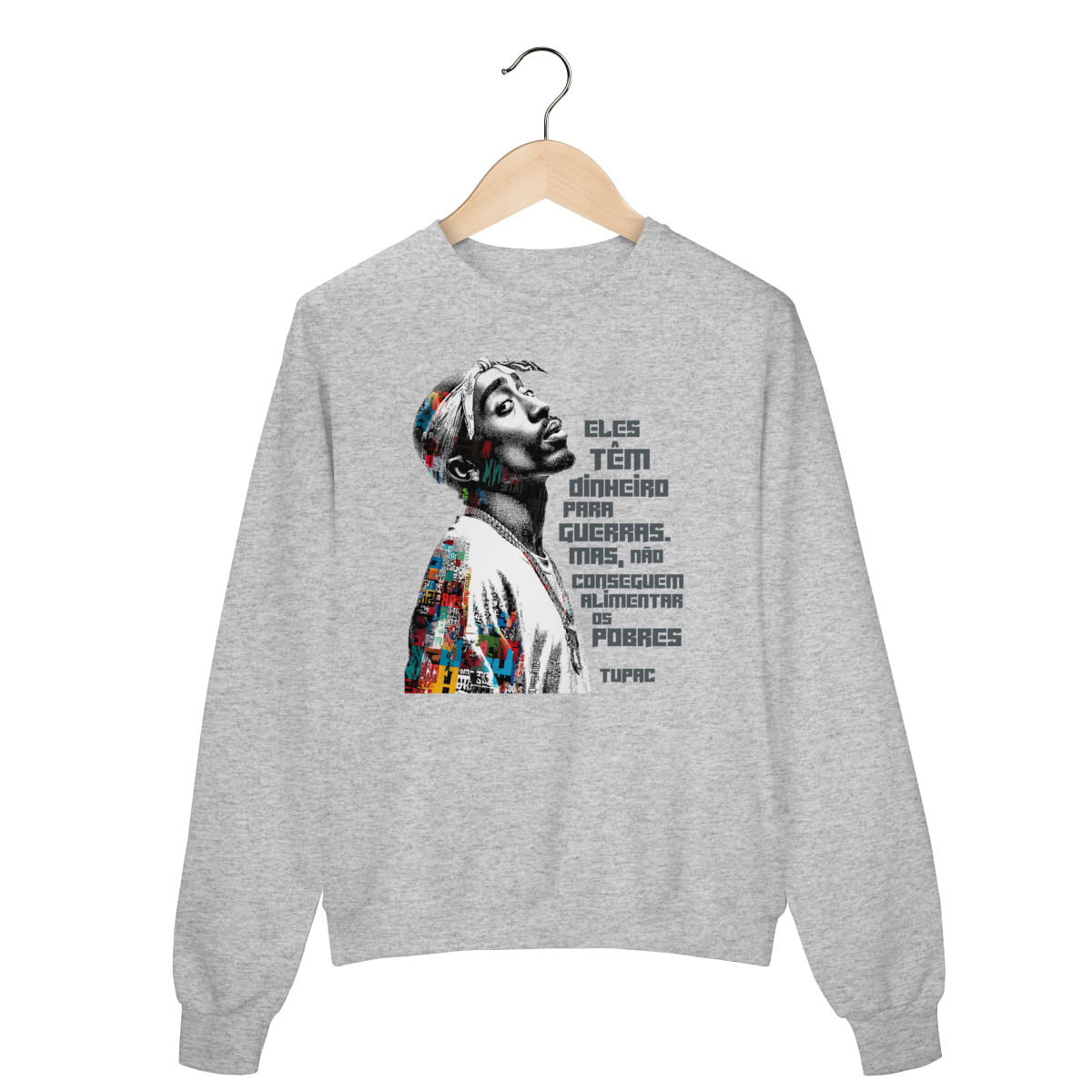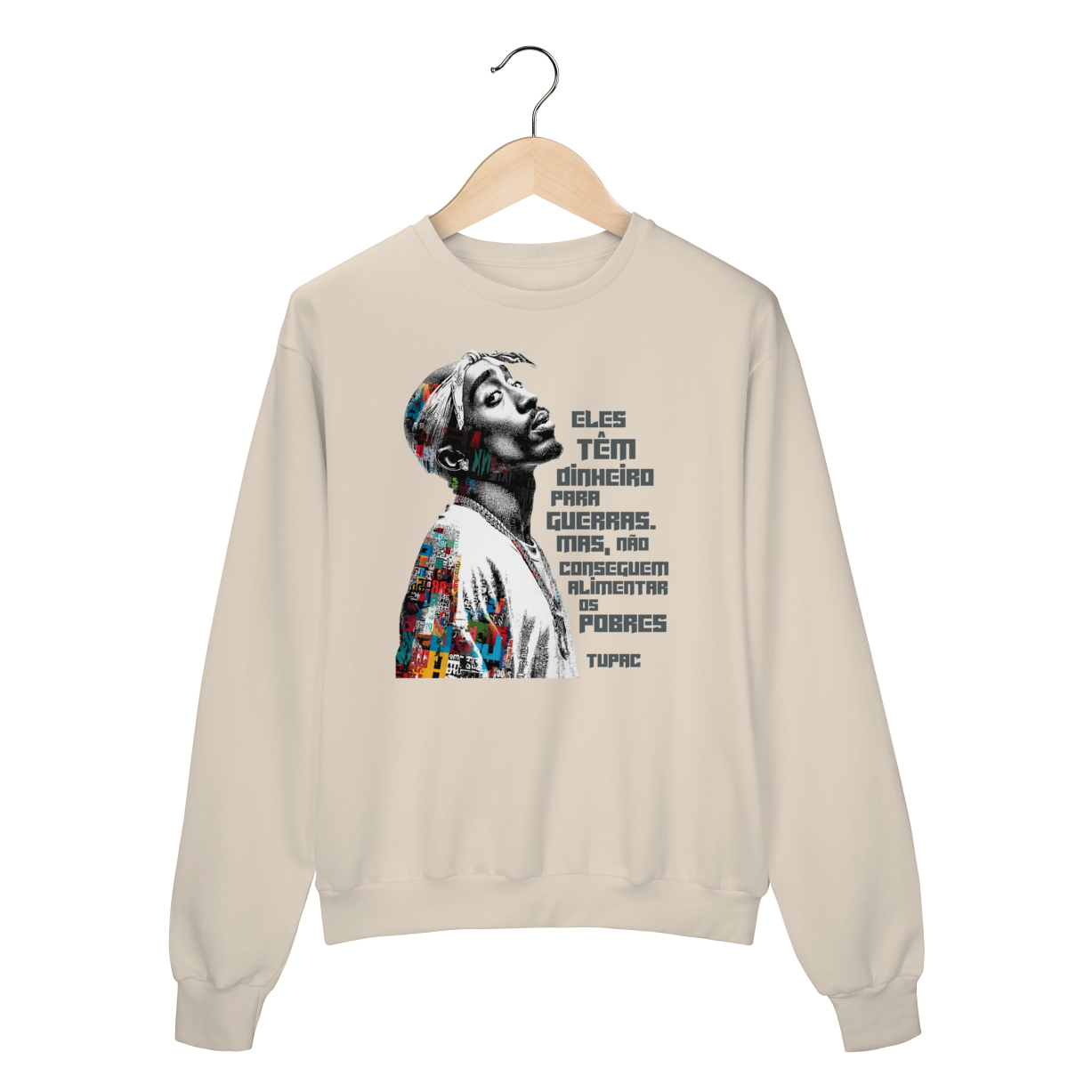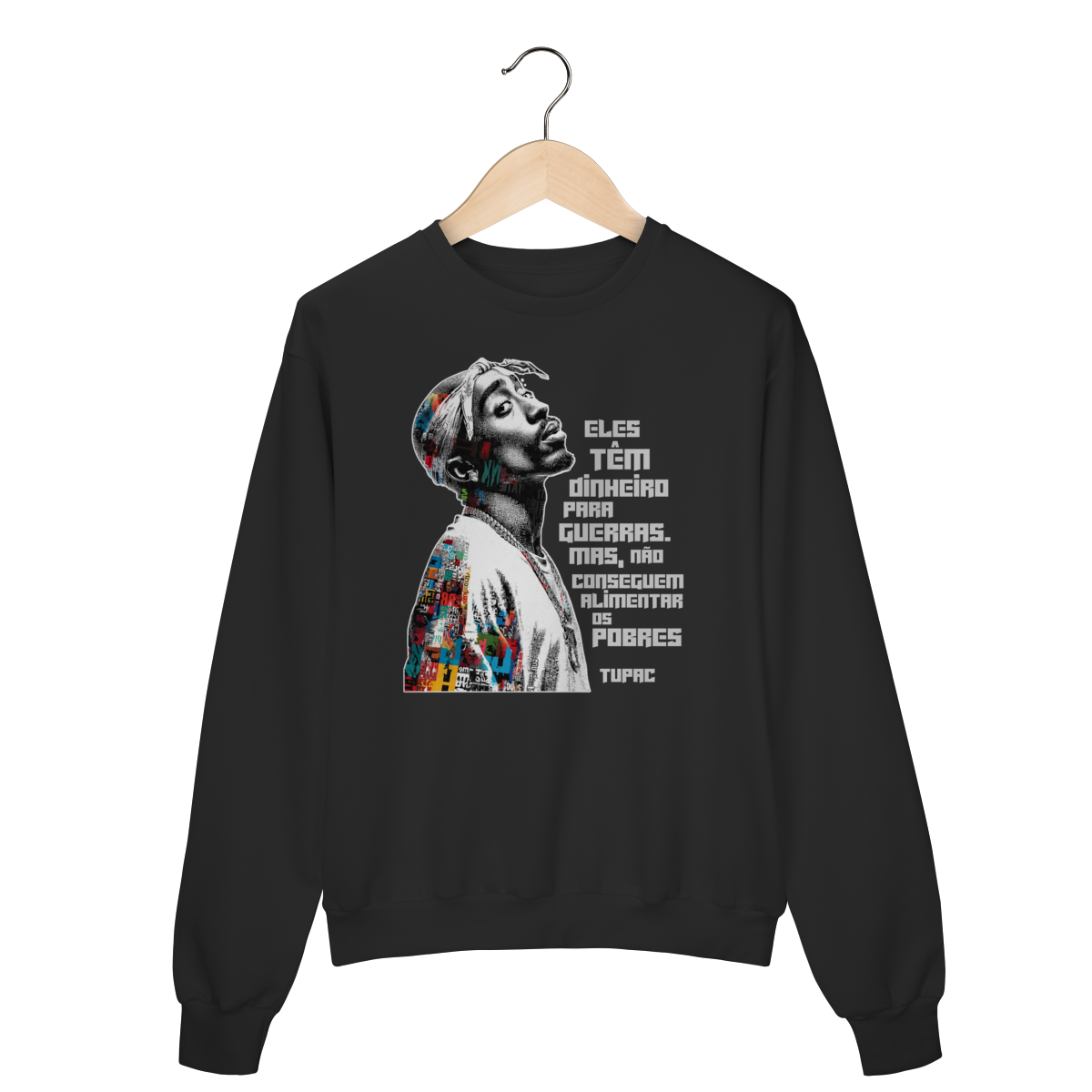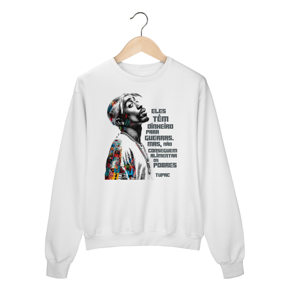 O Suéter de Moletom Fala Poeta! não é apenas uma peça de roupa — é um manifesto vestível. Com a frase icônica de Tupac Shakur “Eles têm dinheiro para guerras, mas não conseguem alimentar os pobres”, essa estampa carrega a força da denúncia social, da consciência política e da resistência cultural que atravessa gerações.