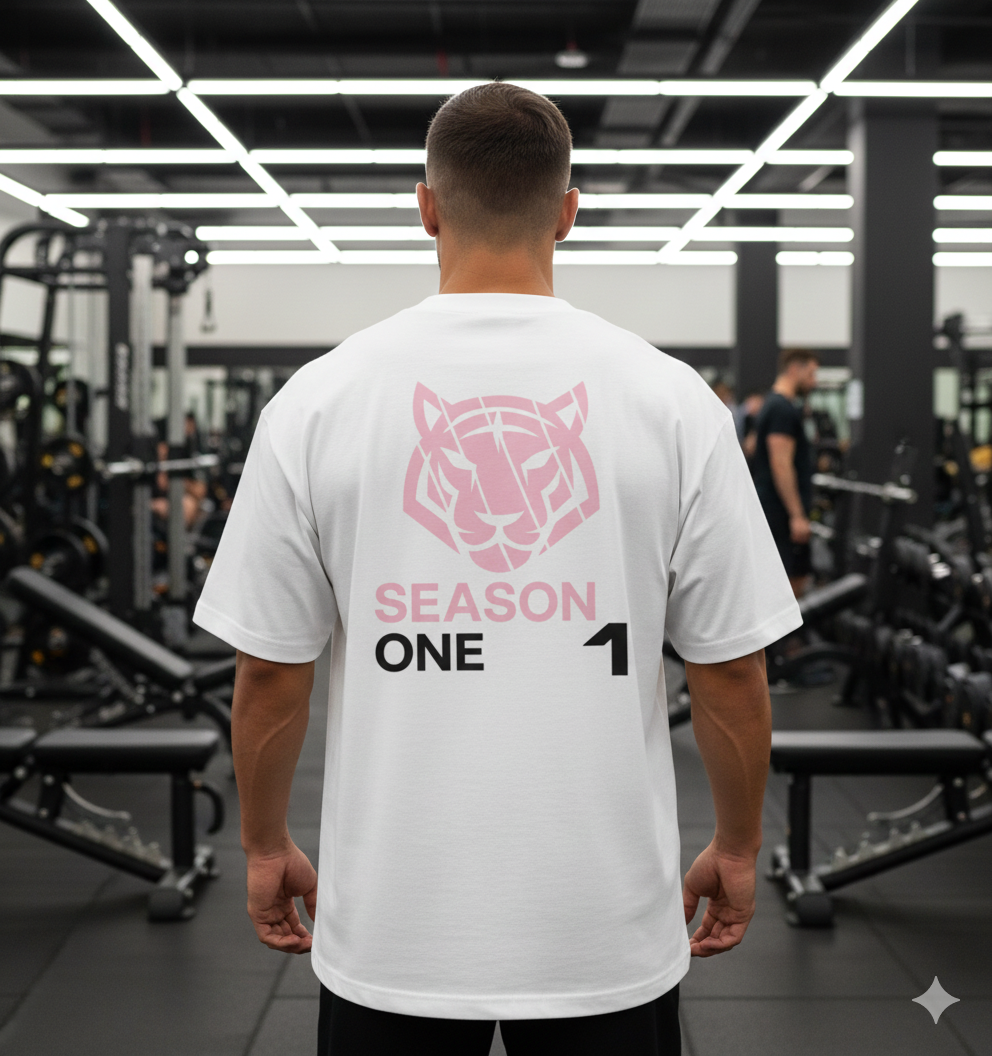 O corte oversized traz liberdade de movimento e um visual urbano atual, enquanto o logo Season One carrega o significado de início, constância e evolução — para quem vive em modo progresso, dentro e fora do treino.