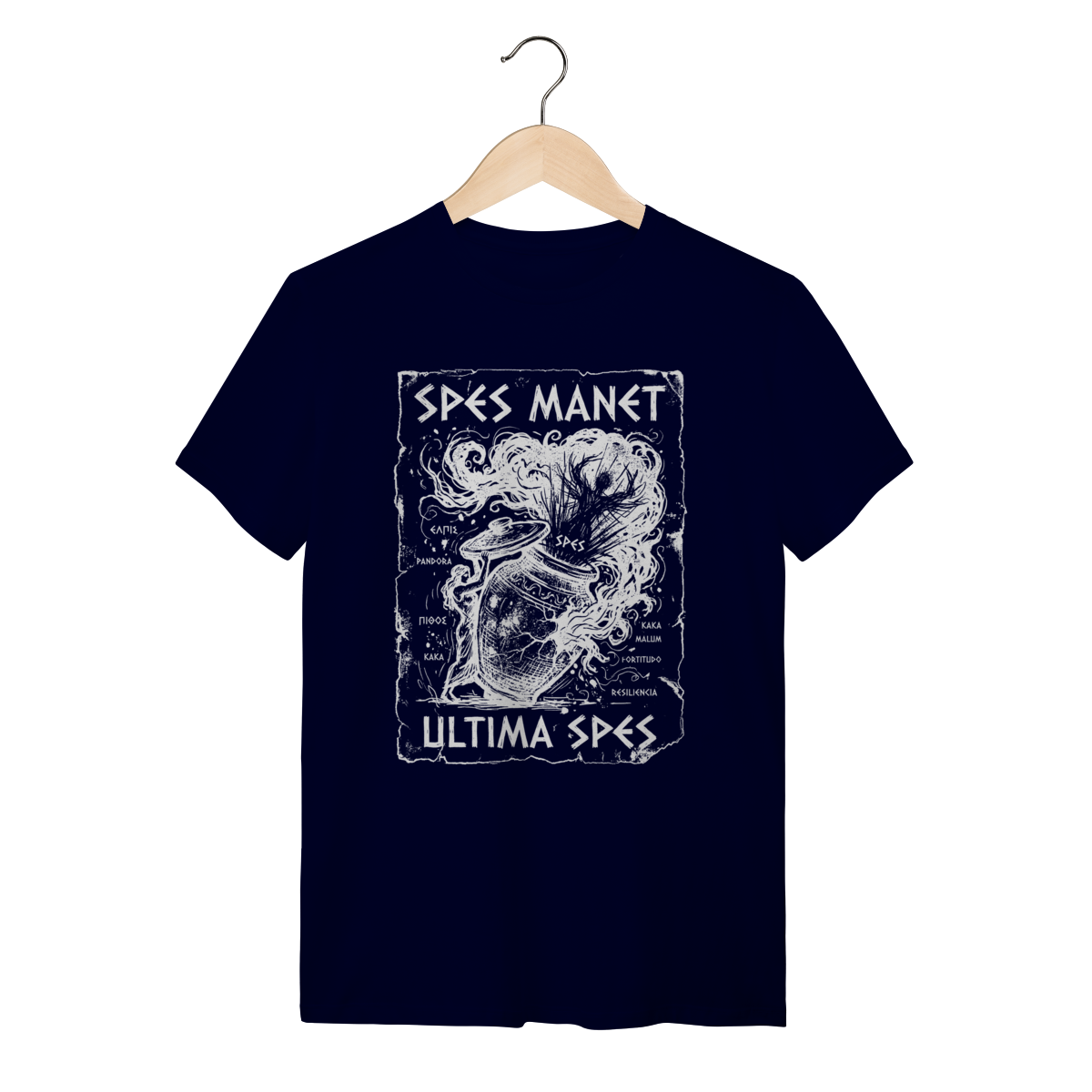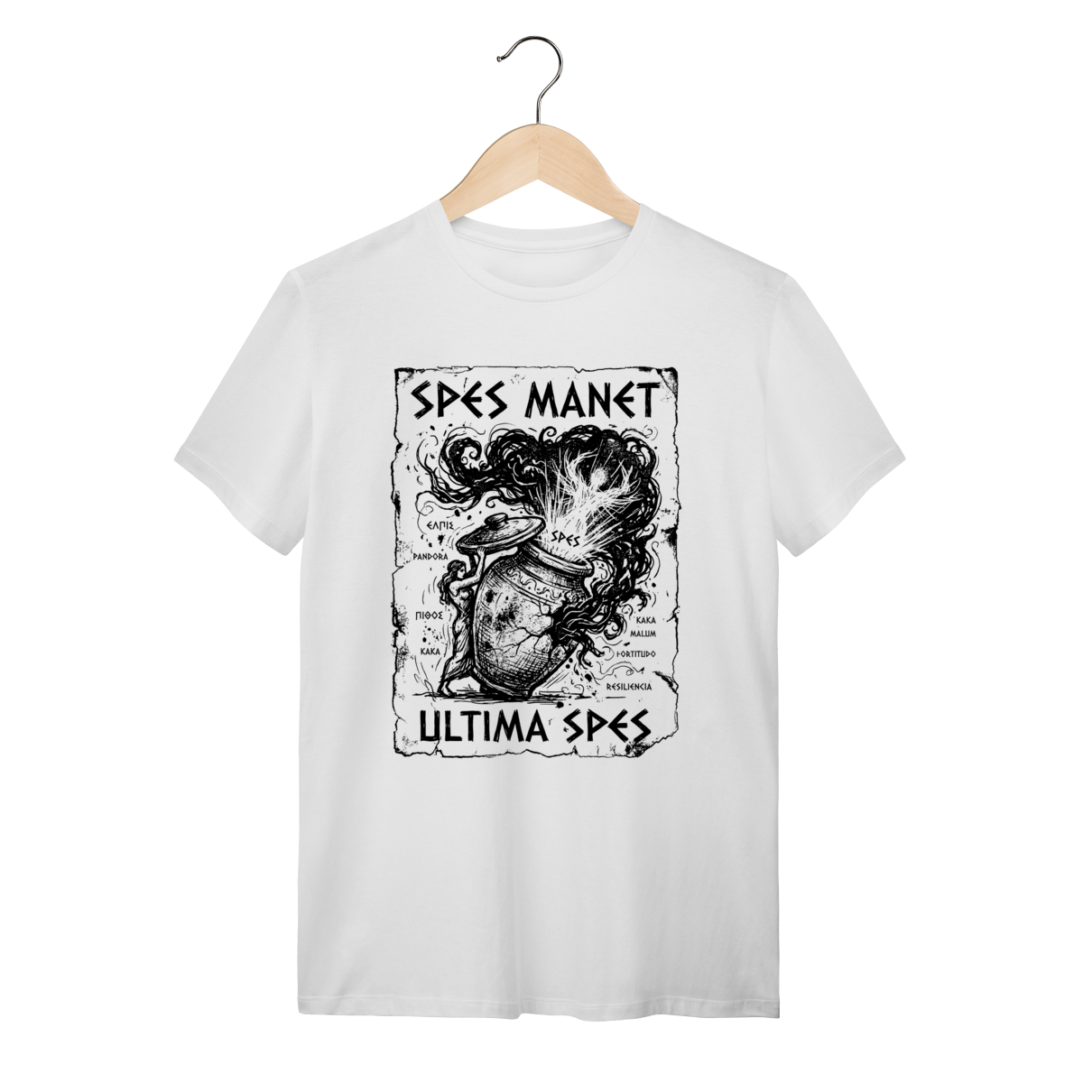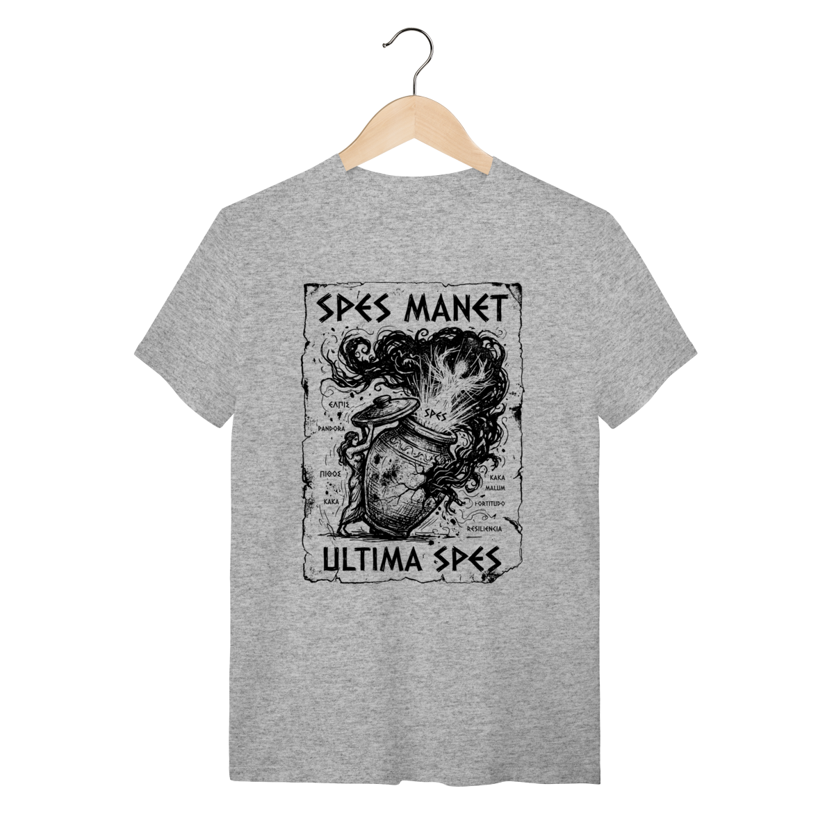 A verdadeira força não reside em evitar o sofrimento, mas em encontrar a luz quando tudo o mais foi liberado. Ao vestir esta estampa, você não está apenas usando uma referência mitológica; você está carregando o manifesto estoico da resiliência. Você sinaliza ao mundo que, independentemente das adversidades ("Kaka/Malum"), sua fortaleza interior ("Fortitudo") permanece intacta. É uma peça para quem entende que a esperança ("Spes") é a última fronteira da mente invencível.