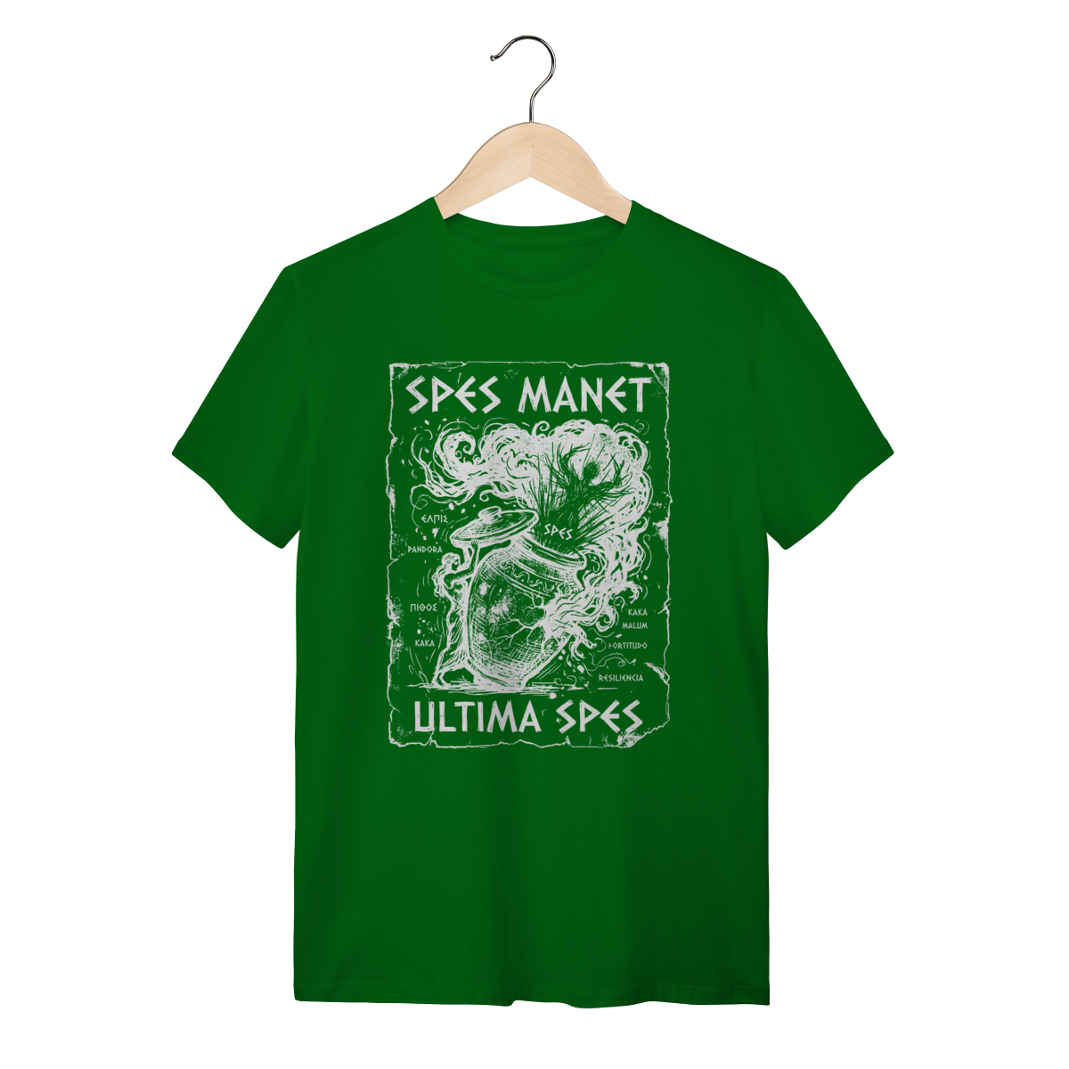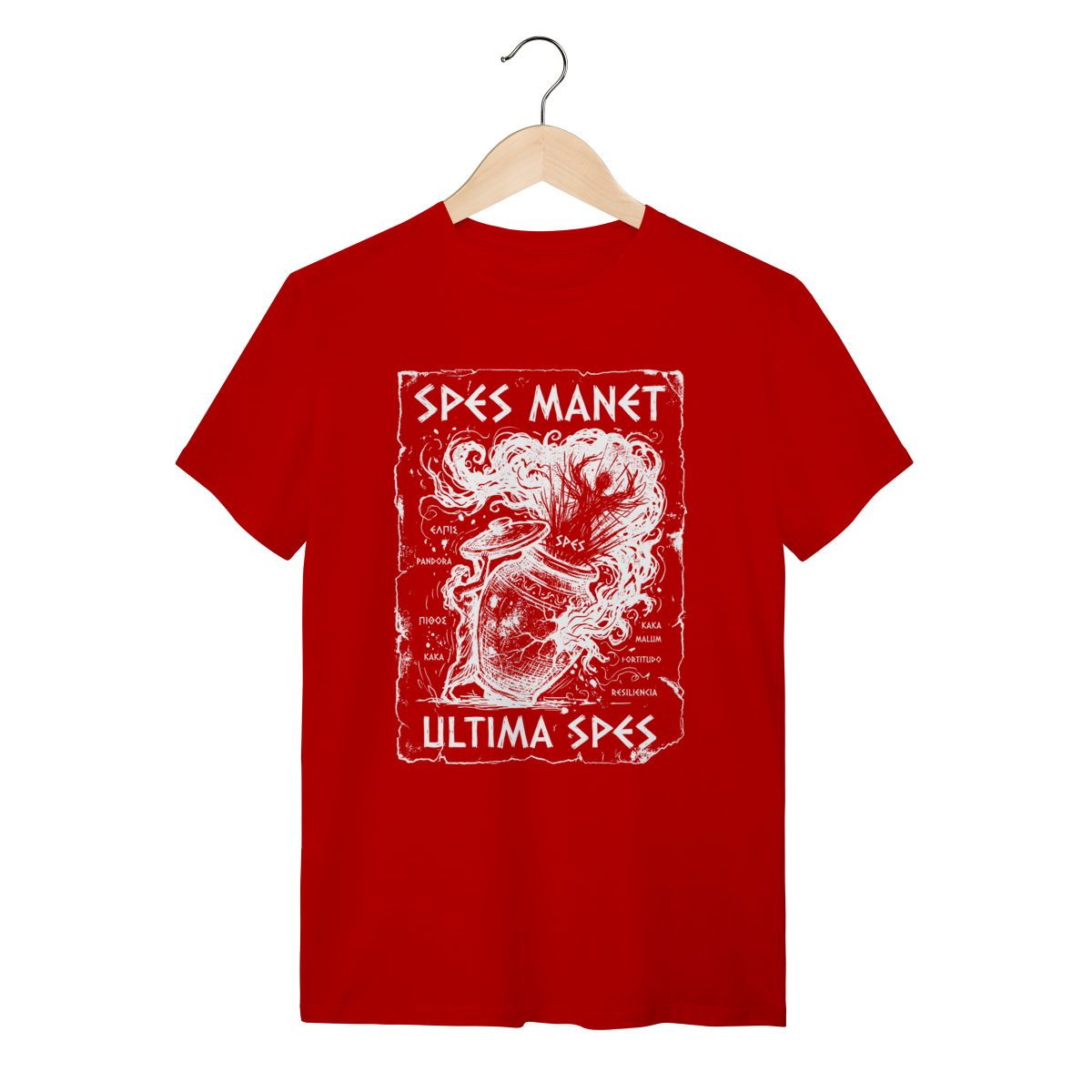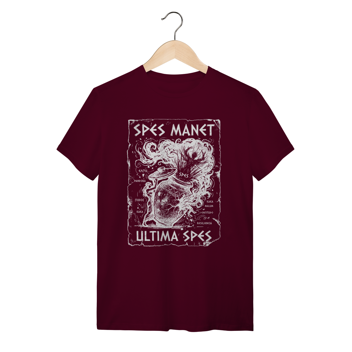 A verdadeira força não reside em evitar o sofrimento, mas em encontrar a luz quando tudo o mais foi liberado. Ao vestir esta estampa, você não está apenas usando uma referência mitológica; você está carregando o manifesto estoico da resiliência. Você sinaliza ao mundo que, independentemente das adversidades ("Kaka/Malum"), sua fortaleza interior ("Fortitudo") permanece intacta. É uma peça para quem entende que a esperança ("Spes") é a última fronteira da mente invencível.
