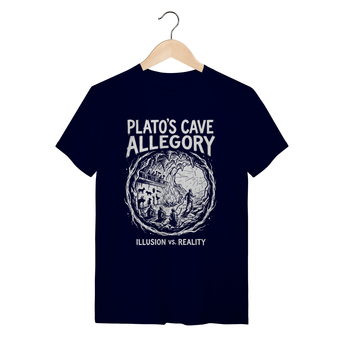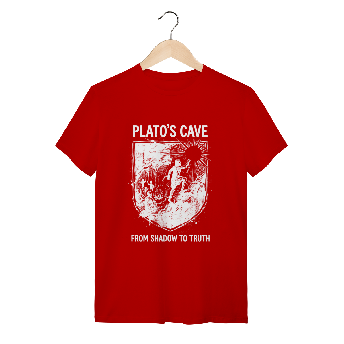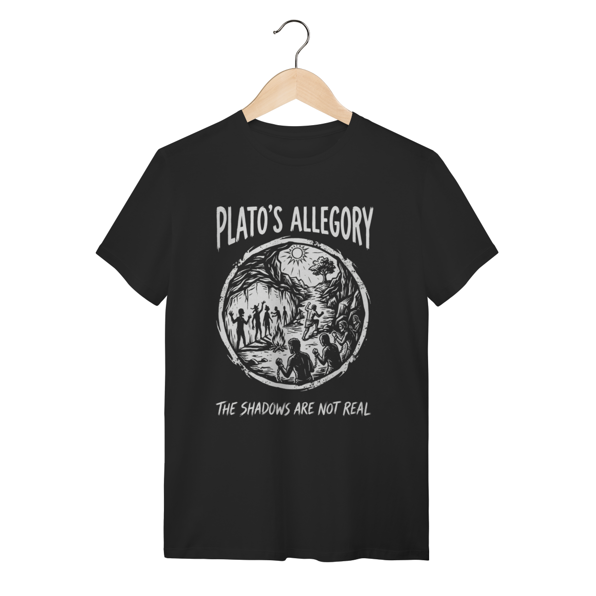 Você não aceita o mundo como ele é apresentado superficialmente. Esta peça não é apenas roupa; é um manifesto de quem questiona, de quem busca a luz do conhecimento e entende que a maioria vive presa em ilusões. Vista a sabedoria de Platão e sinalize sua profundidade intelectual para quem também está "fora da caverna".