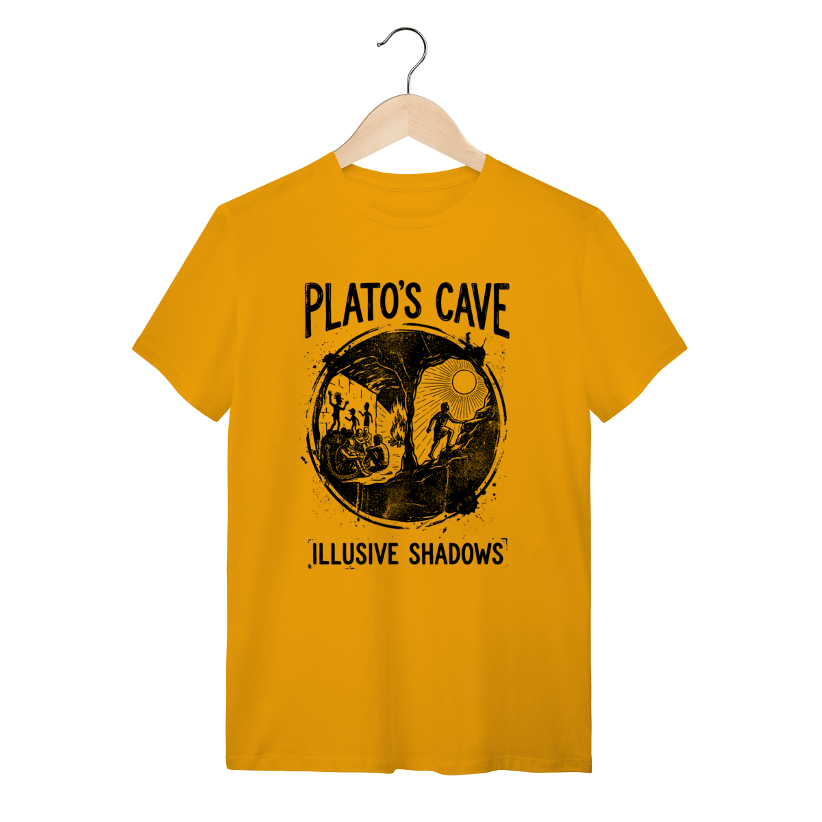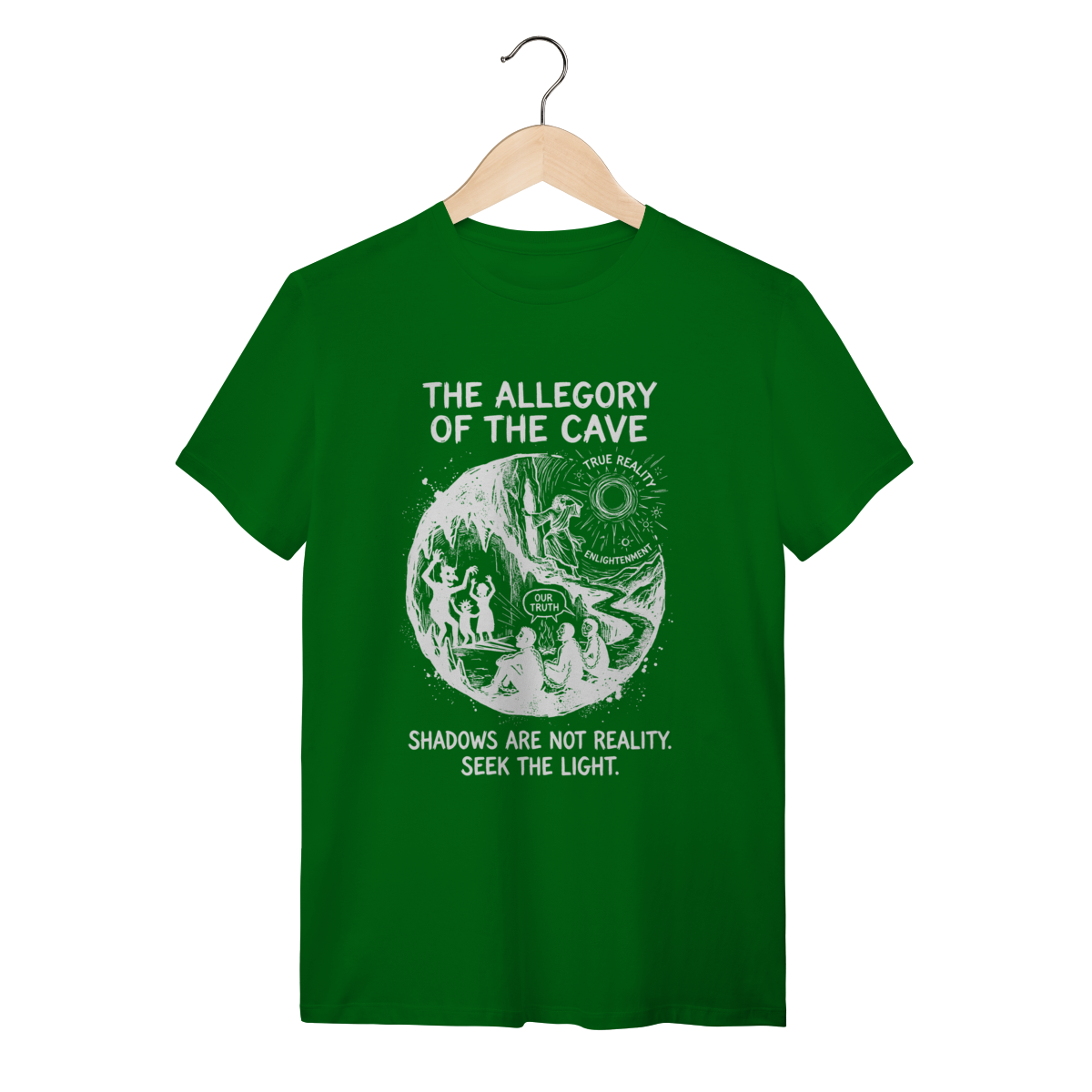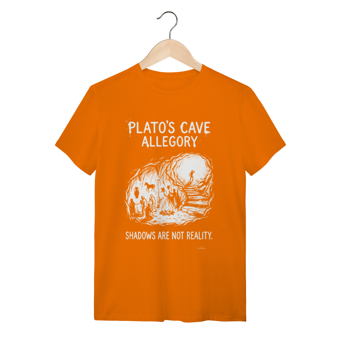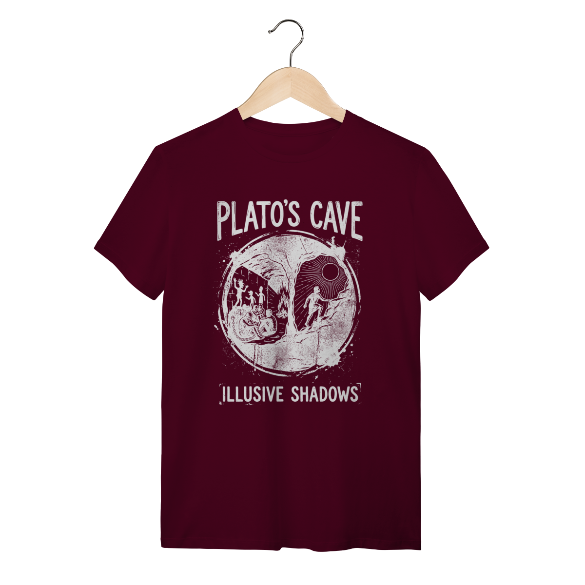Você não aceita o mundo como ele é apresentado superficialmente. Esta peça não é apenas roupa; é um manifesto de quem questiona, de quem busca a luz do conhecimento e entende que a maioria vive presa em ilusões. Vista a sabedoria de Platão e sinalize sua profundidade intelectual para quem também está "fora da caverna".