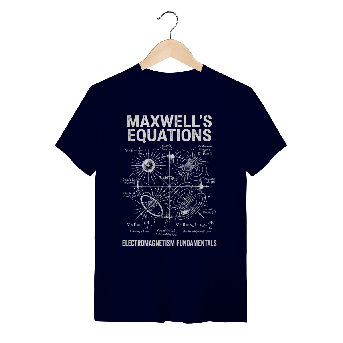 James Clerk Maxwell não apenas escreveu equações; ele traduziu a eletricidade e o magnetismo na linguagem da luz. Usar esta peça é mais do que vestir roupa, é carregar no peito o código-fonte da tecnologia moderna, demonstrando apreço pela beleza simétrica da física e pelo conhecimento que separou a humanidade da escuridão. É um tributo à genialidade pura.