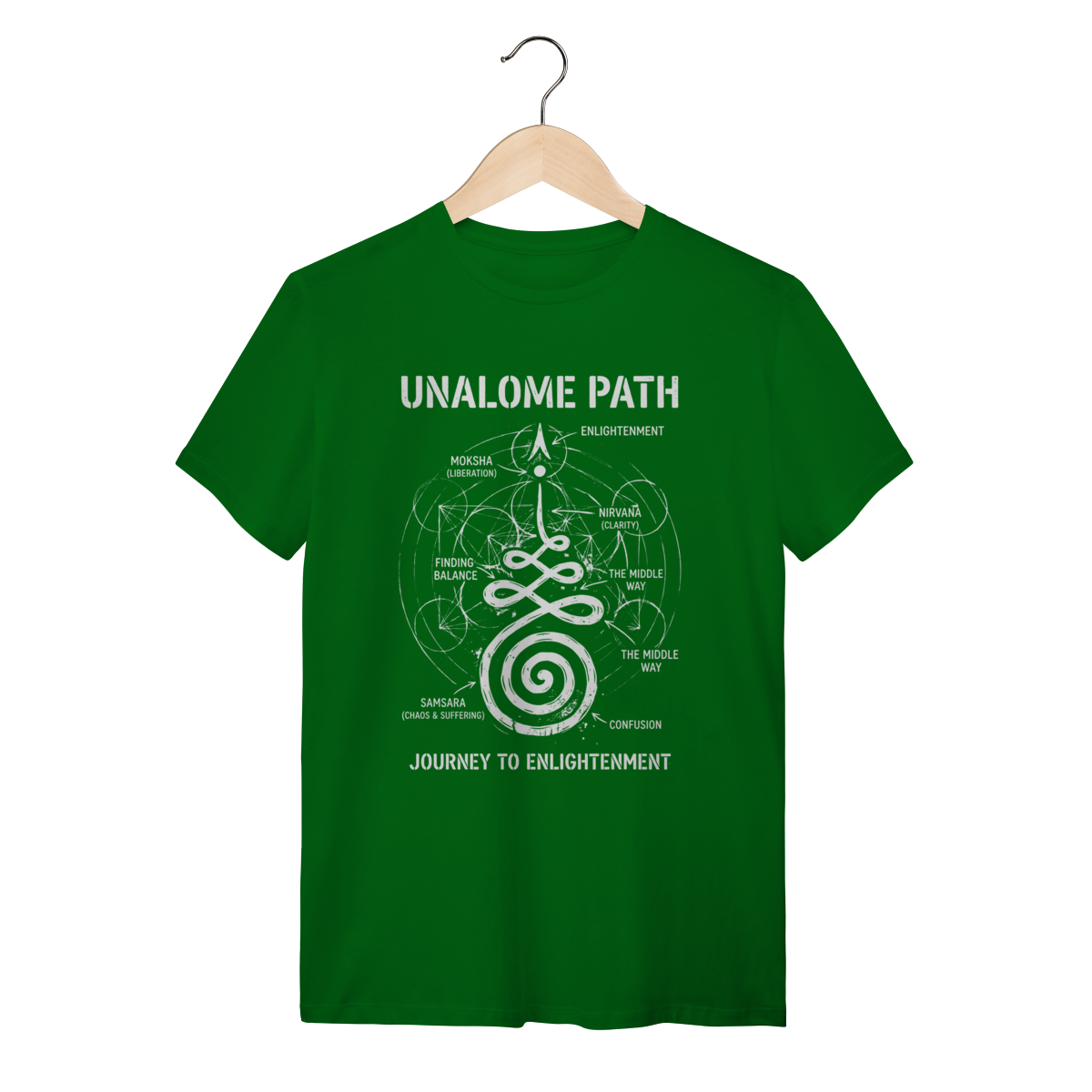 O Unalome não é apenas um desenho; é o mapa da existência humana. A espiral representa o começo, o caos e os erros; os nós são as lições aprendidas; e a linha reta é o Nirvana, a iluminação. Vestir esta peça é sinalizar ao mundo que você entende que a confusão faz parte do processo, mas que o seu destino é a clareza. Mostre que você é resiliente, evoluído e está em constante busca pela sua melhor versão.