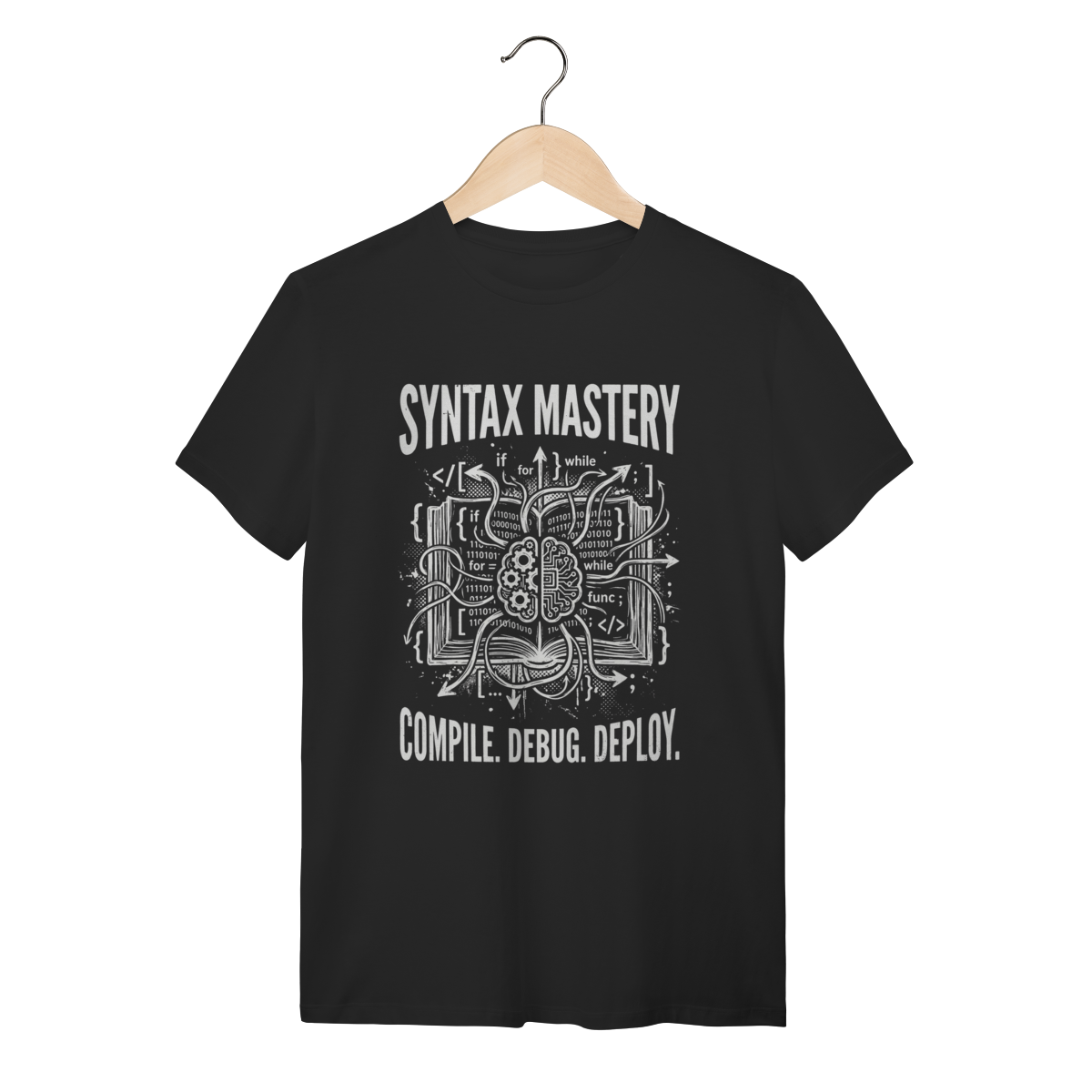 Programar não é apenas digitar; é a arte de dar ordens ao caos. Vestir a coleção "Syntax Dev" é carregar no peito o orgulho de pertencer à elite intelectual que fala a língua das máquinas. Esta peça celebra a mente analítica, a paciência do debug e a euforia do deploy bem-sucedido. Mostre ao mundo que você não apenas usa tecnologia — você a cria.