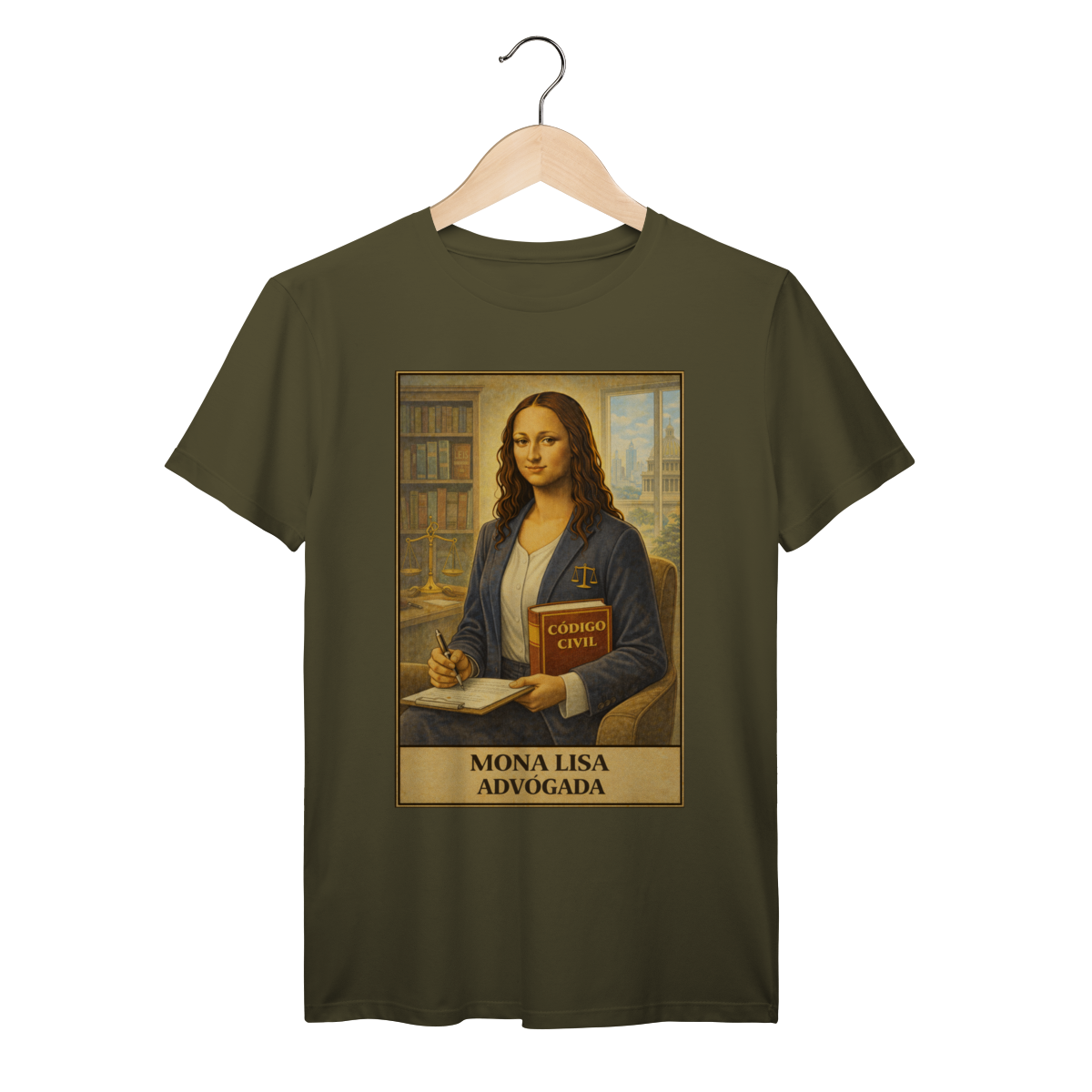 With law books and quiet confidence, Mona Lisa steps into the legal world. A refined design for those who value justice, logic, and sharp thinking.