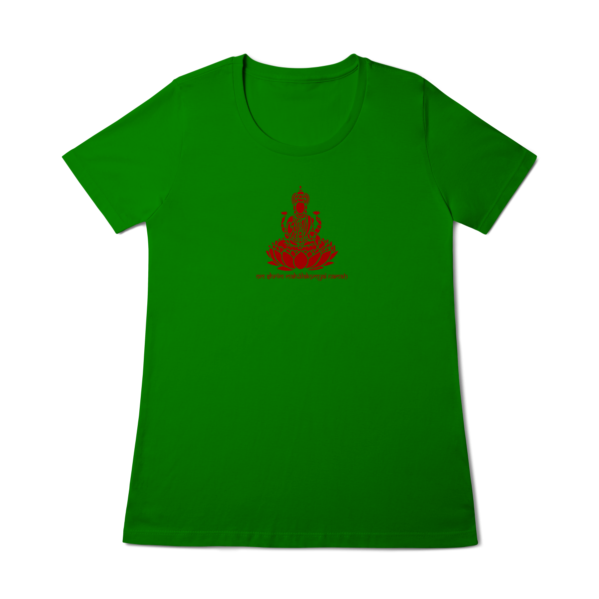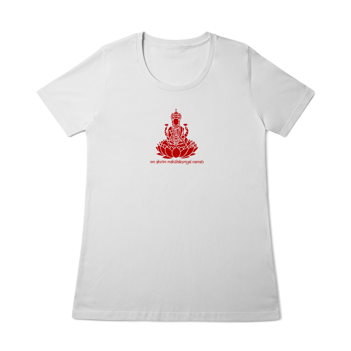 Inspirada na Deusa Lakshmi, símbolo da prosperidade espiritual e material, a estampa traz o mantra “Om Shrim Mahalakshmyai Namah”, que invoca plenitude e harmonia.